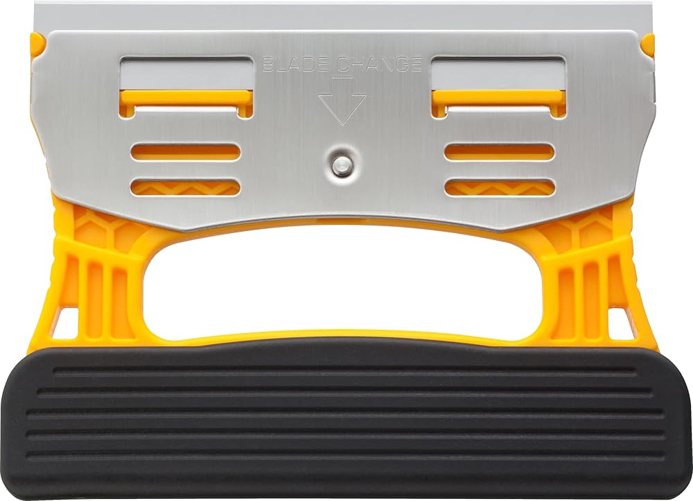 HEAVY DUTY HANDLE - The slim profile and wide-grip handle allow for maximum stability and comfort for any tough removal task, especially flat glass scraping. Acetone and chemical resistant for easy cleaning. Safety blade guard attaches over the handle.