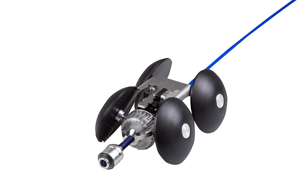 Camera trolley for mounting Wohler push rod camera heads. Adjustable positioning of the camera head for optimum image quality. Especially suitable for large pipes and ventilation ducts.