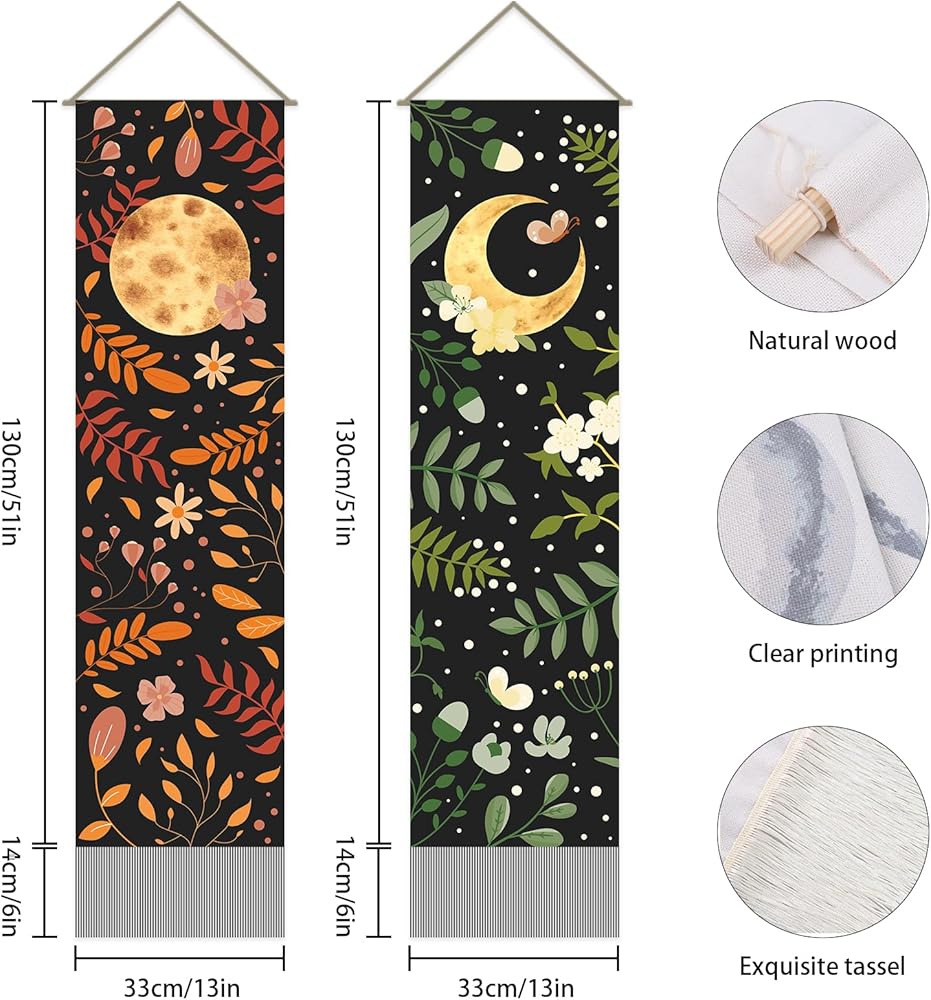 Appropriate size: The size of this tapestry is 12.99inch/330mm wide, 51.18inch/1300mm long, and the tassel is 5.51inch/140mm long. The reasonable size is very suitable for decorating the home and can be placed in the right place according to your preference.