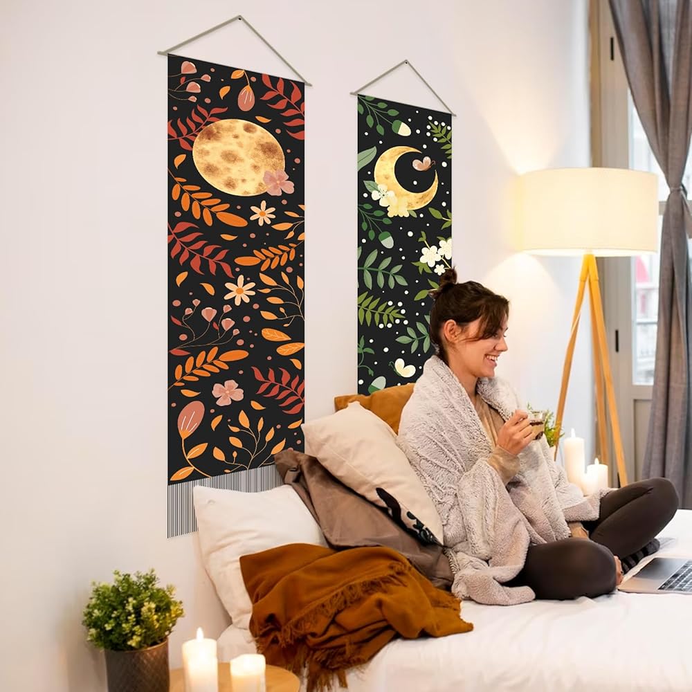 Convenient hanging: The sun and moon tapestry is decorated with hanging rods and lanyards at the top, so that you can easily hang it on the wall, and it is easy to take care of, and the hanging position can be adjusted at any time.
