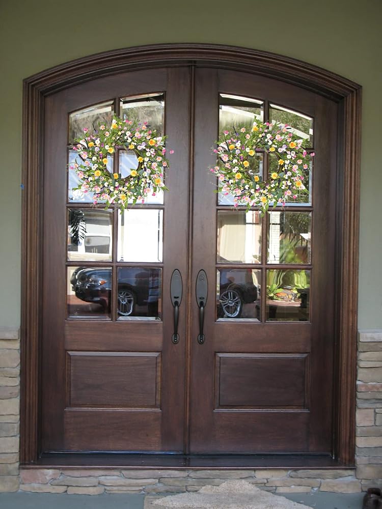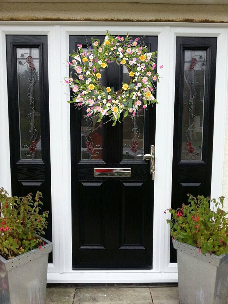 【 Handmade Wreath 】Handmade Front Door Wreath is hand-made with high-quality silk flowers, natural Grapevine wreath base. Non-toxic, exquisite and durable, suitable for use in a variety of scenarios.