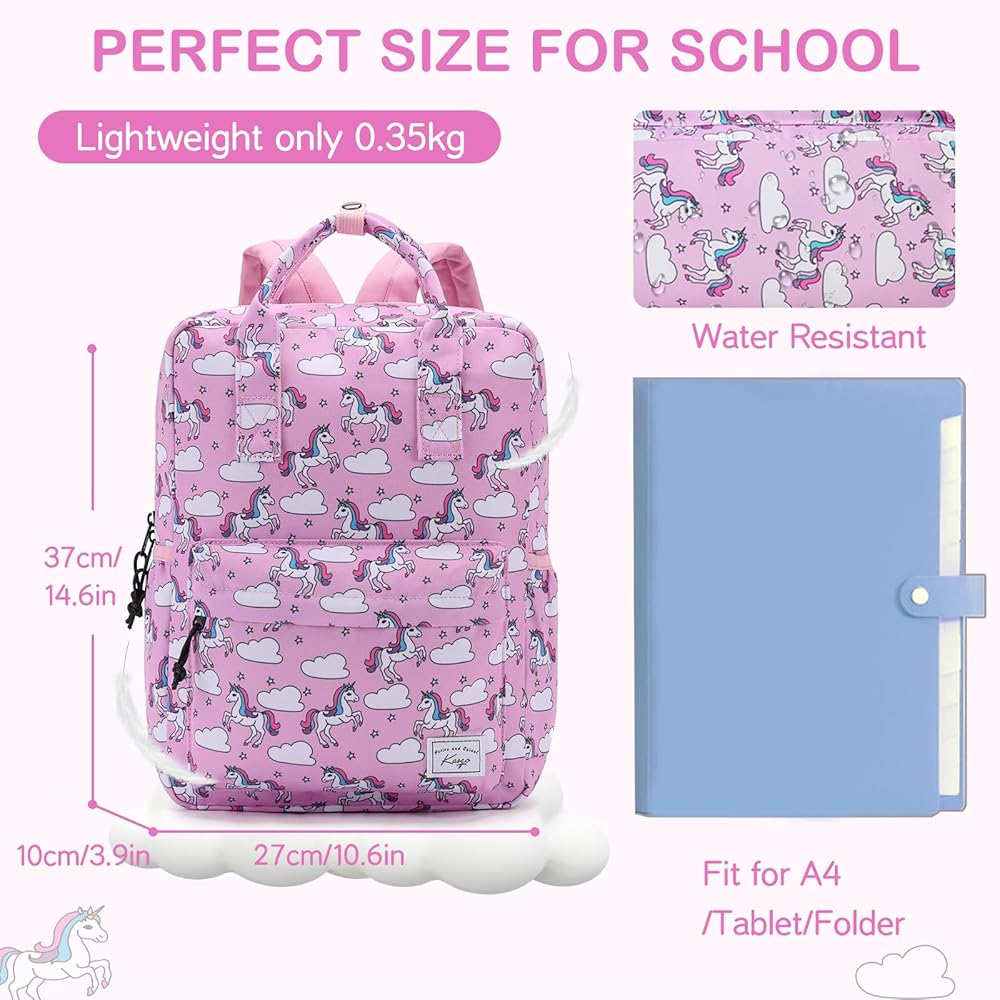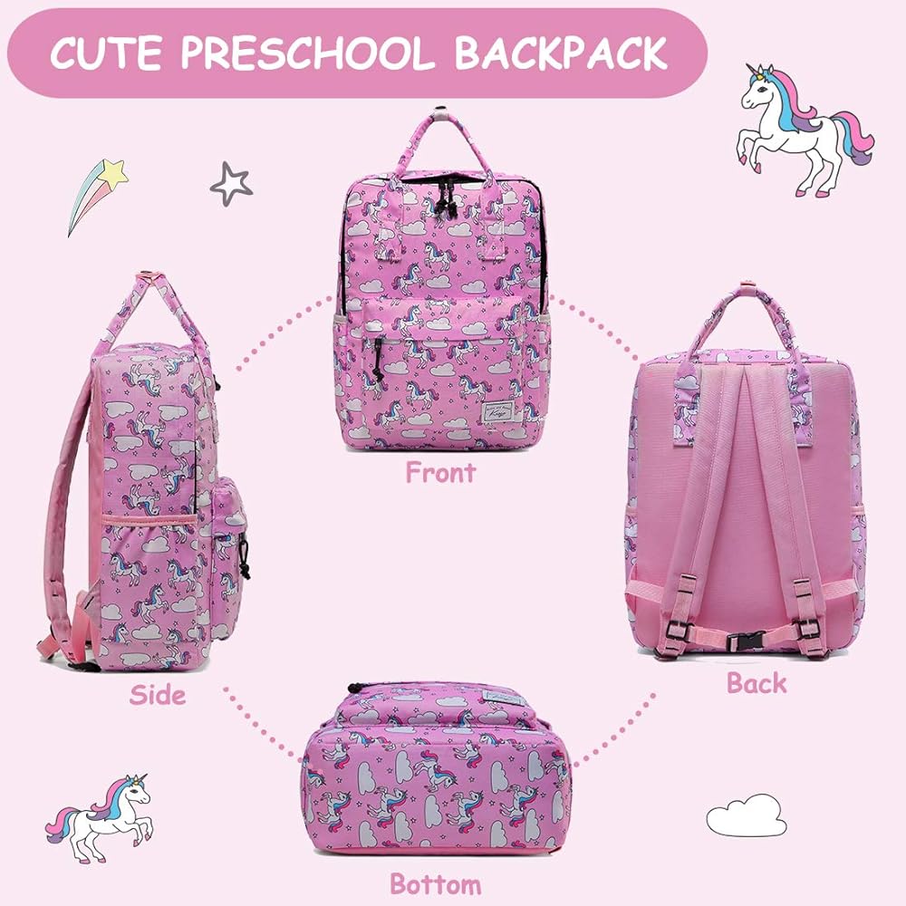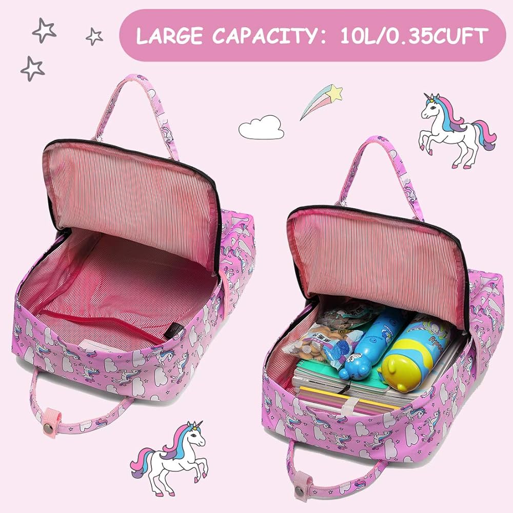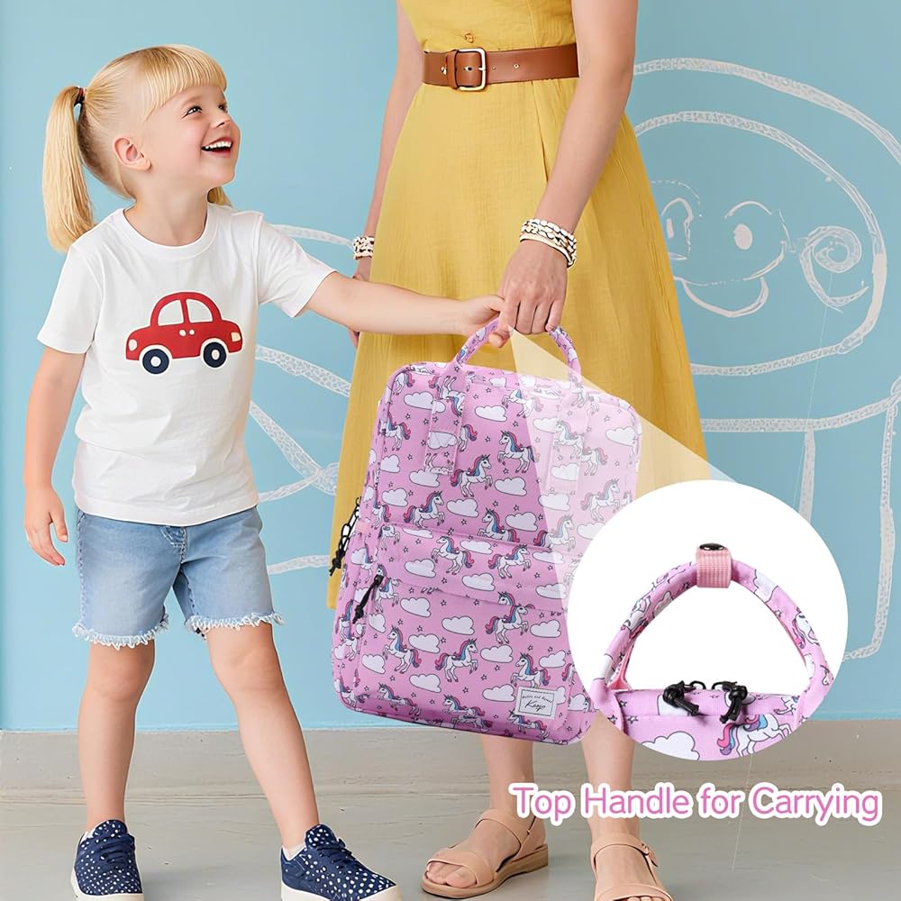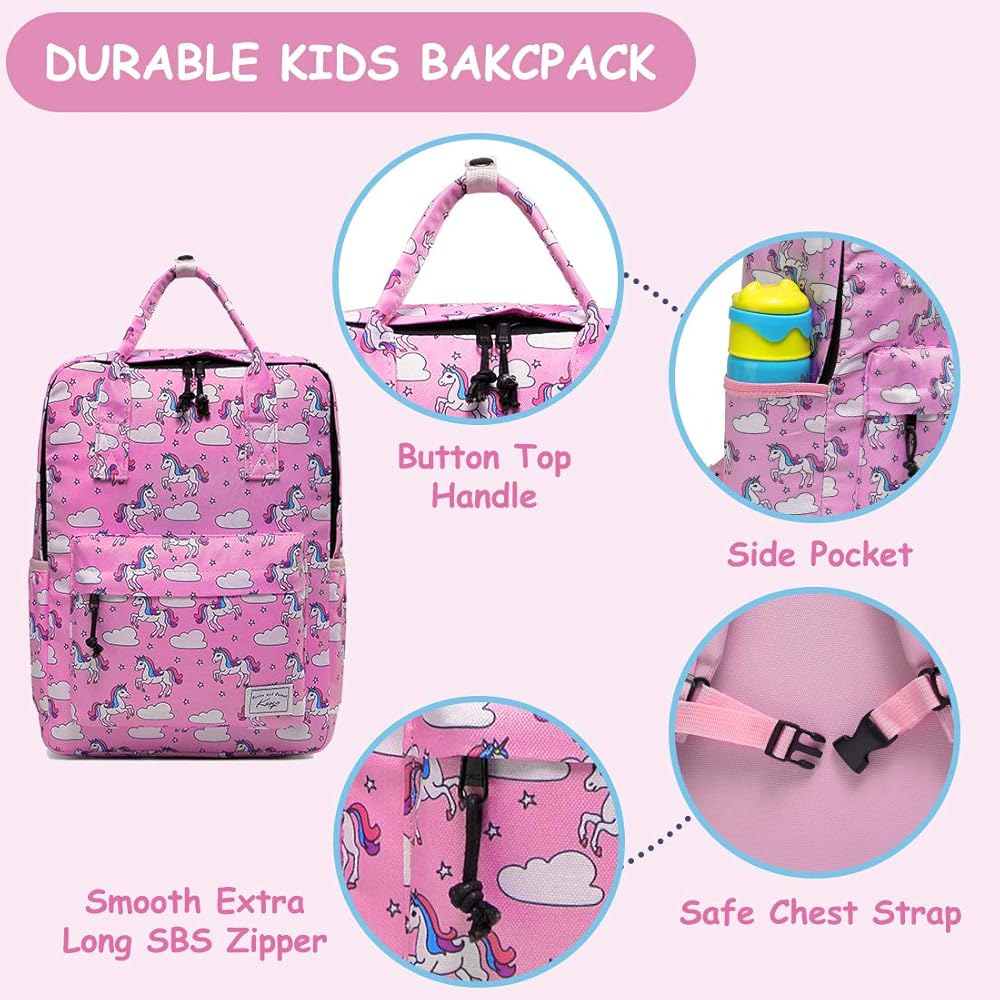 ★COMFORTABLE AND DURABLE: This kids bookbag features adjustable padded shoulder straps, padded back panel and a soft top handle, which can be more comfortable and flexible when your child use it. Smooth SBS double-zippers and extra long pullers help to be pulled easily for little girls and boys. The internal name tag makes it personal so your kids won't get confused with others. Adjustable chest strap allows your child to carry this lovely daypack more firmly during daily activities or running.