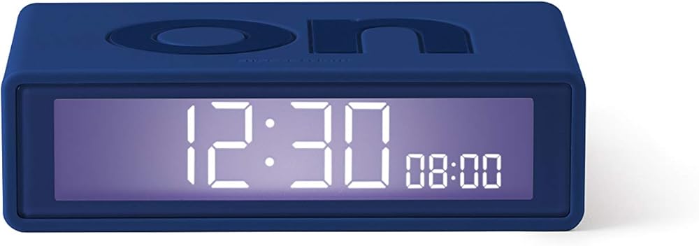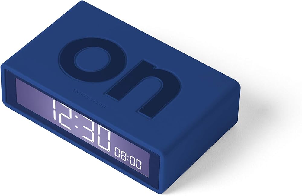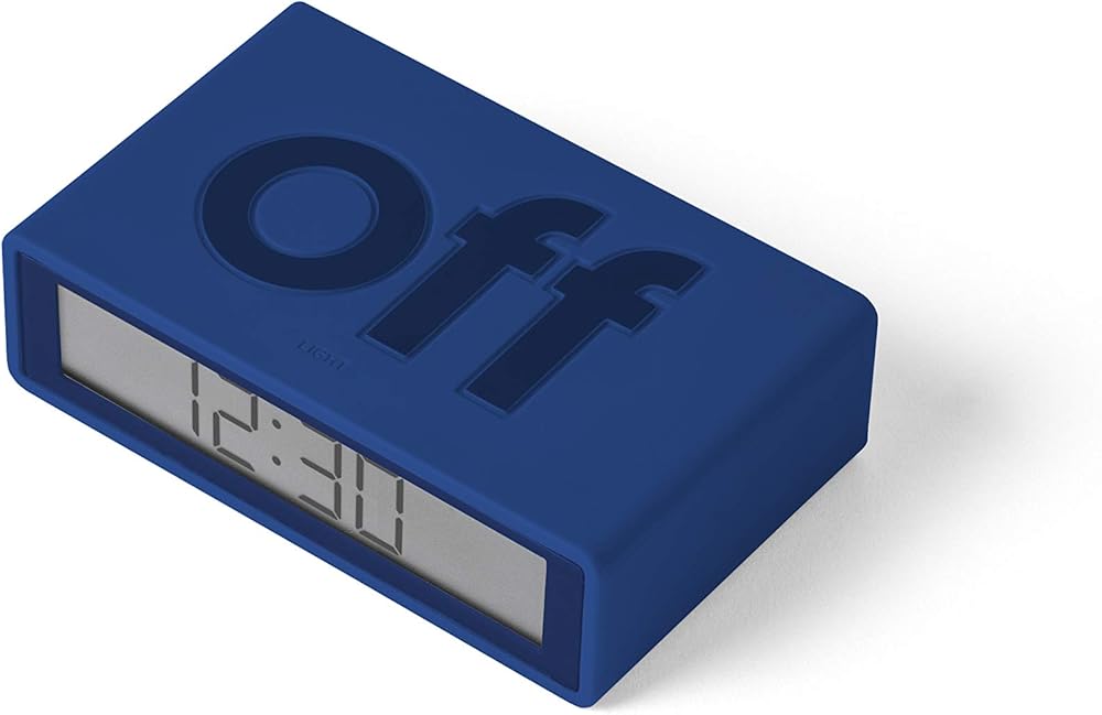 Lexon Flip+ Travel Digital Alarm Clock, Reversible On/Off Faces Small Travel Clock with LCD Display & Touch Sensor Light, Battery Operated, Rubber - Dark Blue