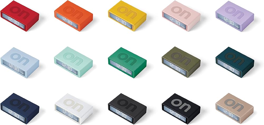 A Reversible ON-OFF Alarm Clock - The alarm is activated by the simple gesture of flipping the clock over to either ON or OFF. Want your alarm clock ON? Flip your clock so the ON side is visible. Then be sure the OFF side is facing up to turn it off.