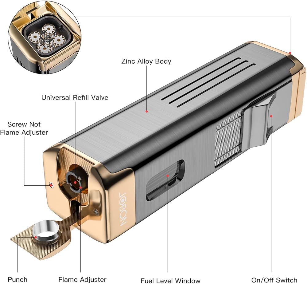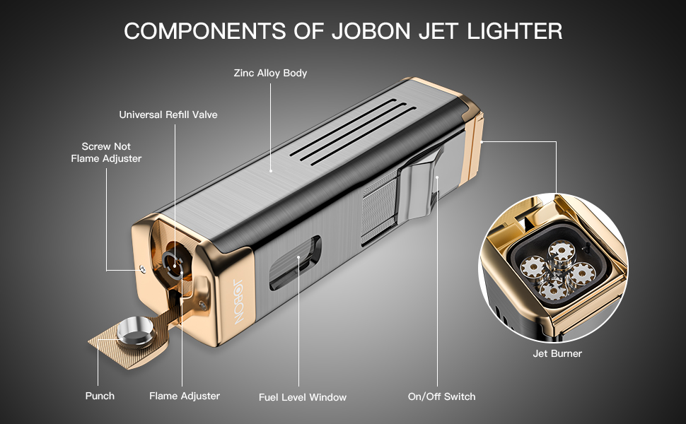 【100% Quality Guarantee】: JOBON jet butane lighter with punch comes with elegant gift box and provide 12 months warranty from the date of purchase. Any question, please feel free to contact our customer service team, we will try to do best service for you.