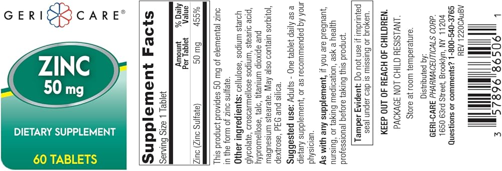 - Gericare Zinc Sulfate 220mg Dietary Supplement, 100 Count