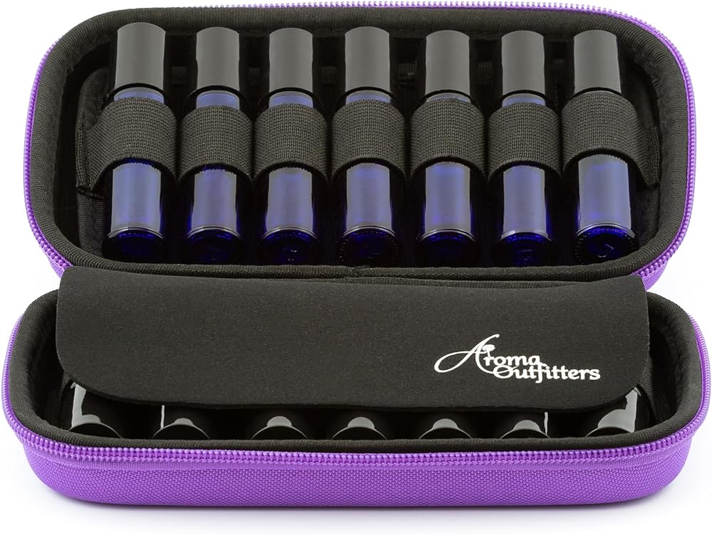 Organize and protect your favorite essential oils with the Aroma Outfitters Essential Oil Carrying Case. Easily transport your bottle collection anywhere you go and never worry again about leaks, spills, and breakage. The hard shell EVA case will securely hold your most prized possessions while traveling and offers long-term protection when stored at home on your essential oil shelf. With ample storage space, this carrying case can store all types of bottles including roller bottles for essential oils, hand sanitizer cases, refillable perfume bottles travel size, atomizers, diffusers, aromatherapy tubes, cologne travel bottles, tattoo ink holders, vials plus many more! Say goodbye to spilling with our foam cushioning system that is designed to protect all of the items in your collection. Each item is held securely in place with adjustable dividers so that you can customize the organizer to fit even the smallest sample drams or up to 10ml roller bottles for essential oils. Essential Oil Carrying Case is perfect accessory storage protector for any oil enthusiasts! Perfect for carrying multiple oils on trips in one convenient location; a must have doula bag essential that packs easily into larger luggage pieces. With this stylish and sturdy carrying case no matter if you need just a few or all of your essential oil accessories together - transporting has never been easier!