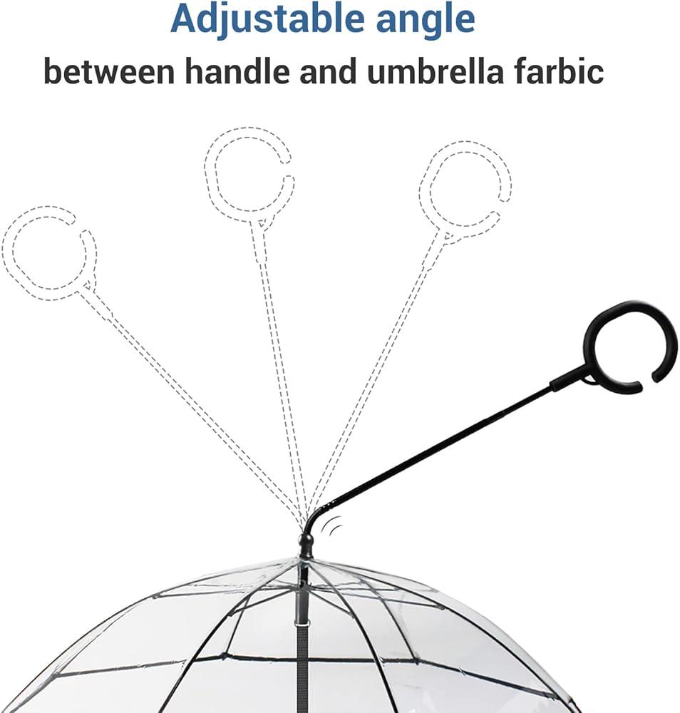 Upgrade C-shape handle and overturn-180° shaft. C-shape can improve comfort when gripping the umbrella handle. Overturn-180° shaft can be adjusted base on owner height. The umbrella shaft can be stretched twice. The hole of the handle can hook up the waste bag.