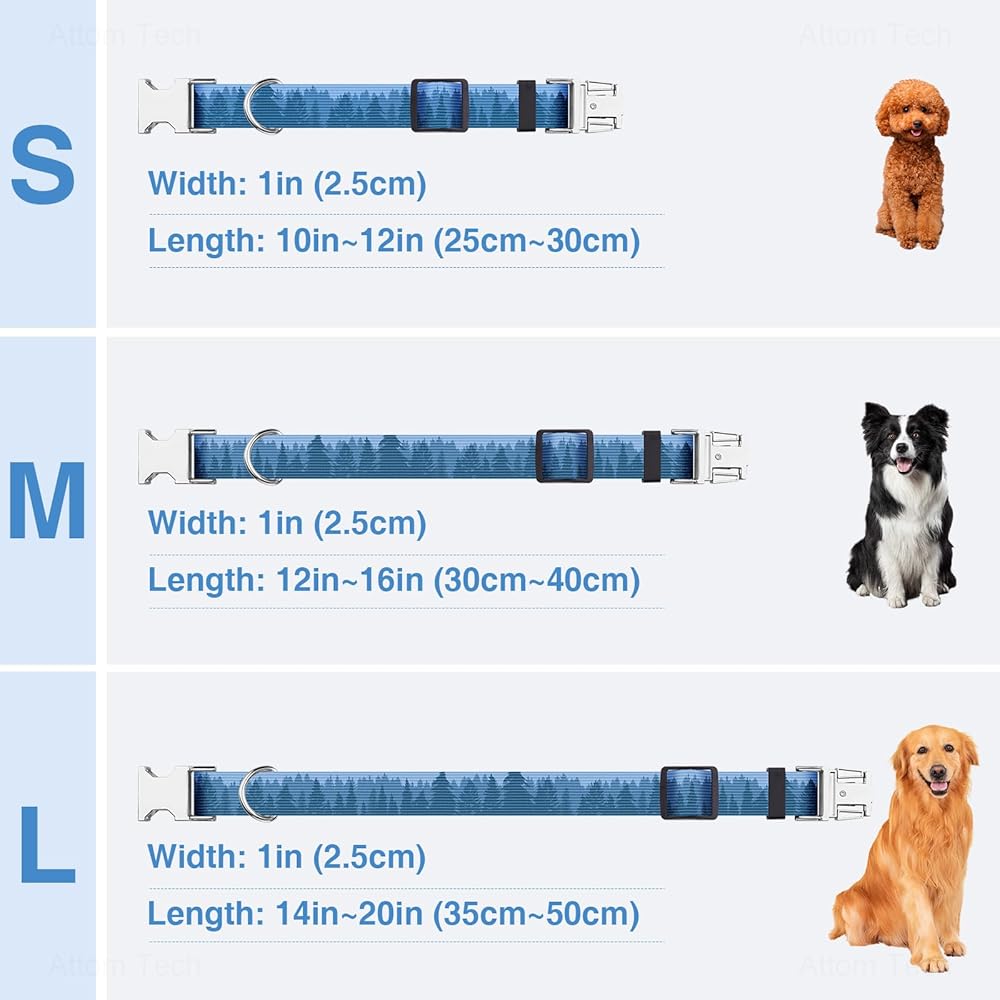 Product Dimensions: Our dog collars come in three sizes to fit every breed: Small (S) has a 1-inch width and adjusts from 10 to 12 inches; Medium (M) is 1-inch wide, adjusting from 12 to 16 inches; and Large (L) offers a 1-inch width, with a length that varies from 14 to 20 inches. Choose the right size for your pet's comfort and safety.