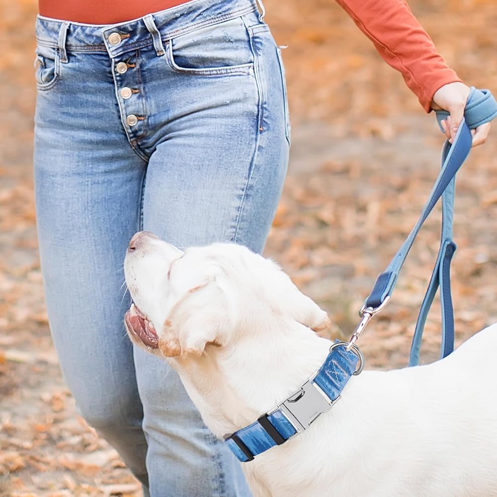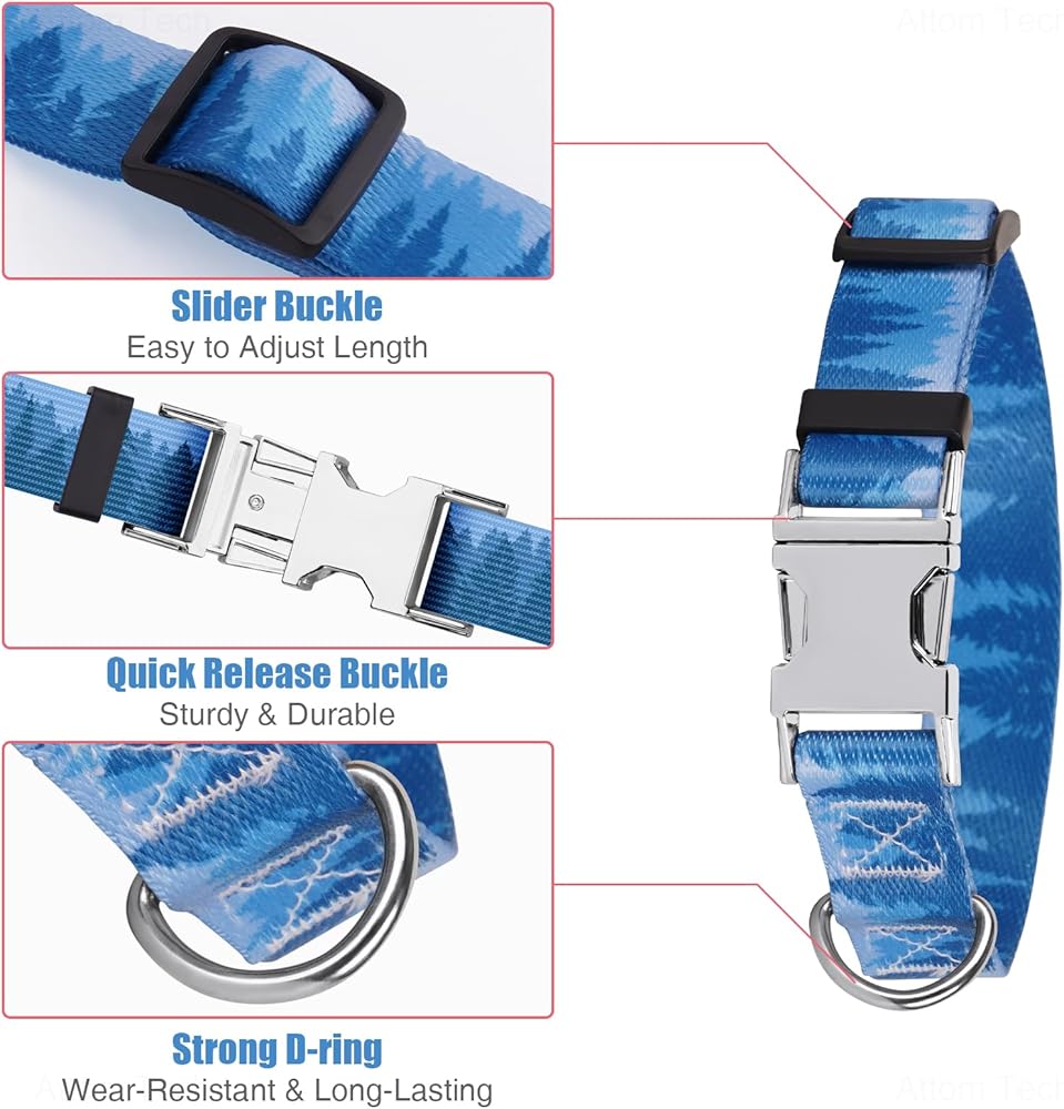 Comfort and Security: Featuring a robust metal quick-release buckle, our dog collar ensures maximum safety by effectively preventing unintended openings. Not only is it sturdy, but its user-friendly design also makes it effortless to put on and take off. Moreover, with its adjustable features, it offers unparalleled flexibility and comfort for your pet.