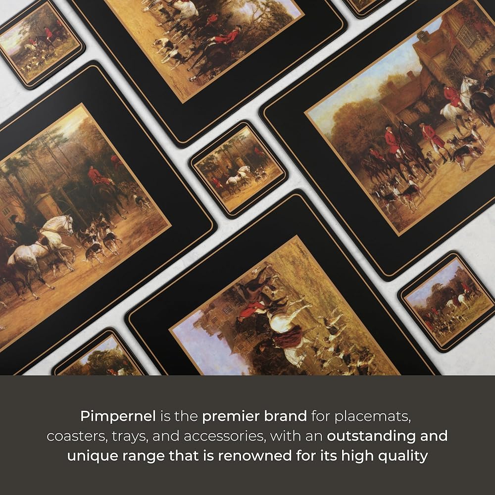 INCREDIBLE ARTISTRY: Depicting different hunting scenes, the Tally Ho Collection from Pimpernel is a wonderful classic to adorn your tabletop. With dogs and horses out for the hunt on backdrops of vintage fields and homes, it's sure to be an instant favorite in your home.