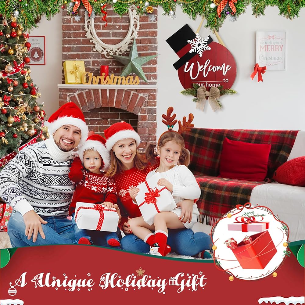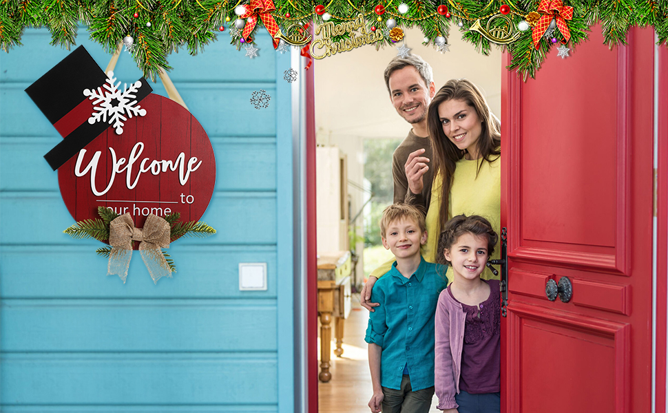 【 Perfect Decorating Your Home 】 Our welcome sign is designed with classic Christmas elements and can be hung on the door to add Christmas atmosphere. And this front door sign is not just any paper print, it has a 3D effect, looks bold and sophisticated, adds a warm festive atmosphere to your home, and expresses your warm welcome.