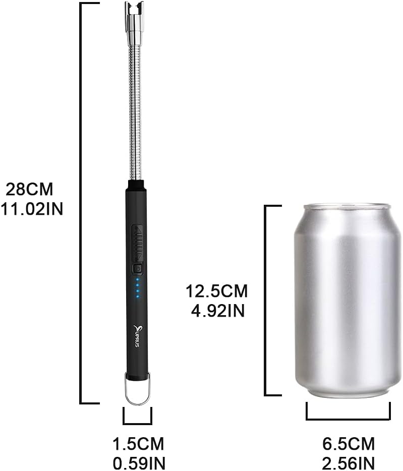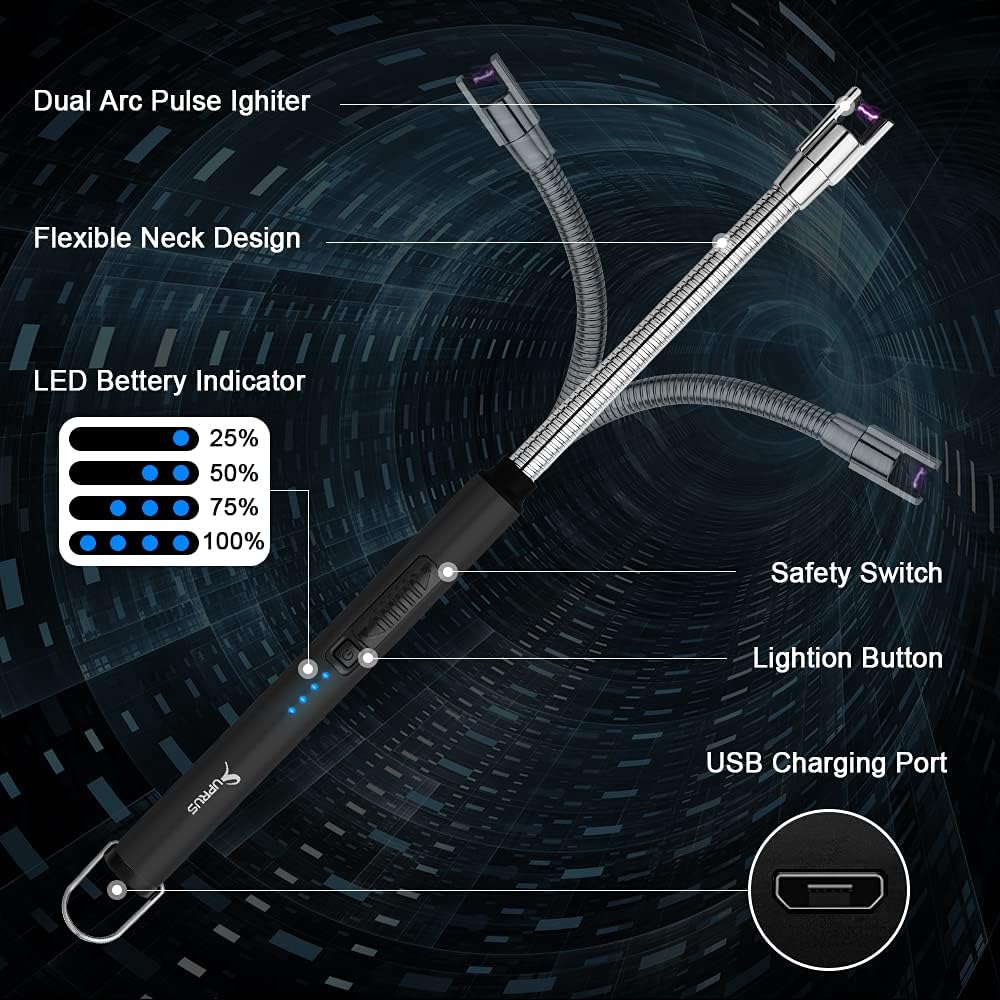 【BATTERY NOTIFICATION】This is the upgraded SUPRUS arc lighter which can display real time battery volume. When 4 LED lights on the barrel turn on, it is full charged.