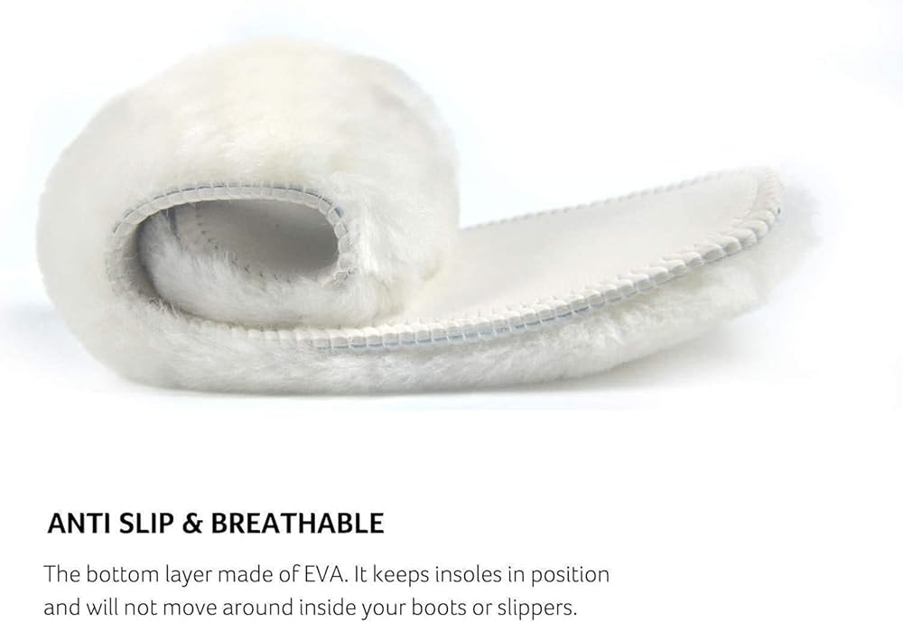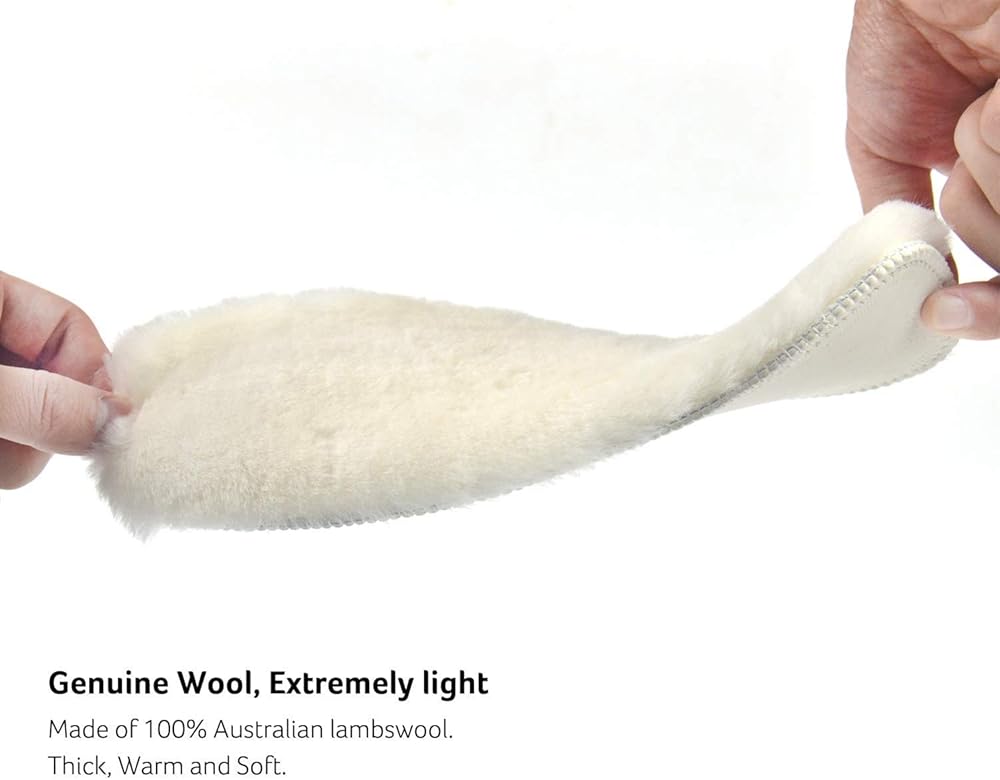 - The insoles are made of 100% genuine lambswool, super warm to keep your feet from getting cold in the harsh winter or rainy days.