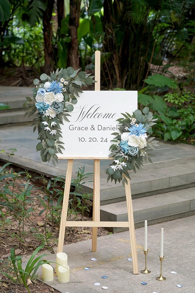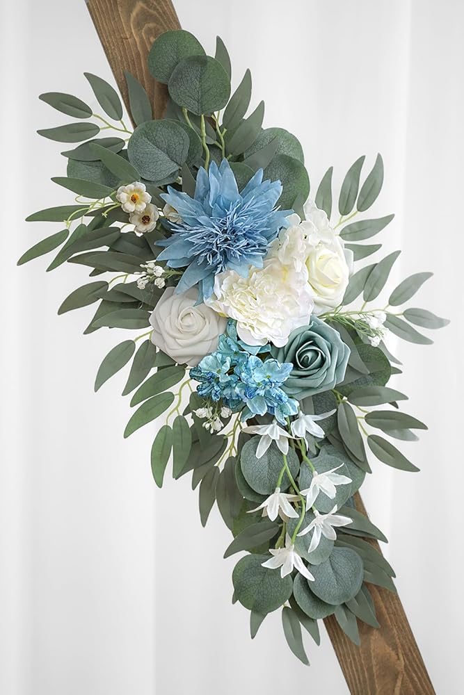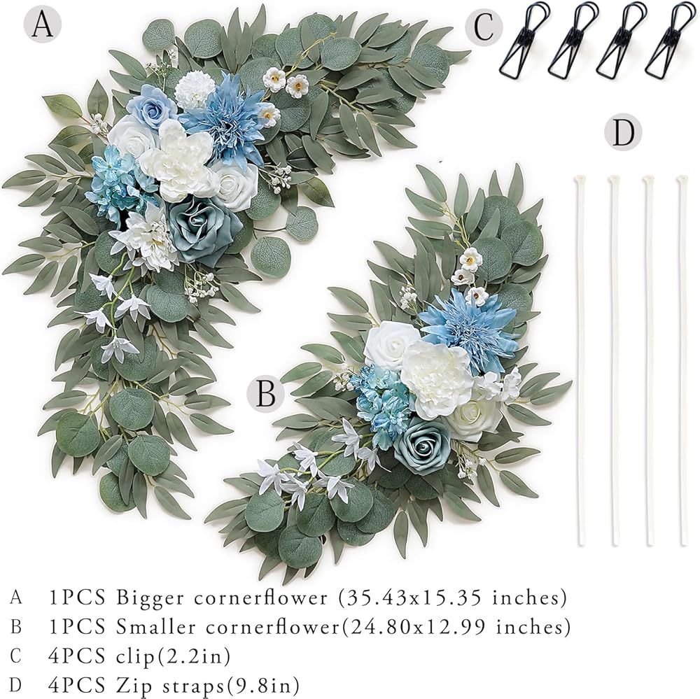 Size: Large dusty blue flower swag's size is 35.43"L x 14.56"W, Smaller dusty blue flower swag's size is 24.80"L x 12.99"W.