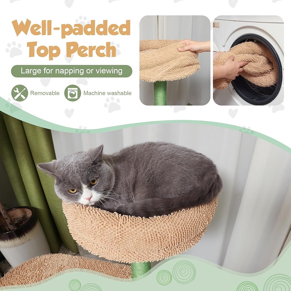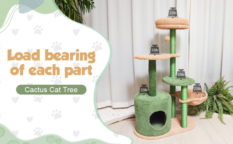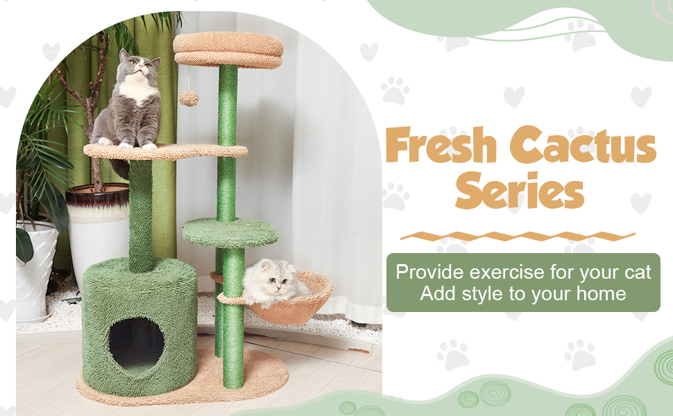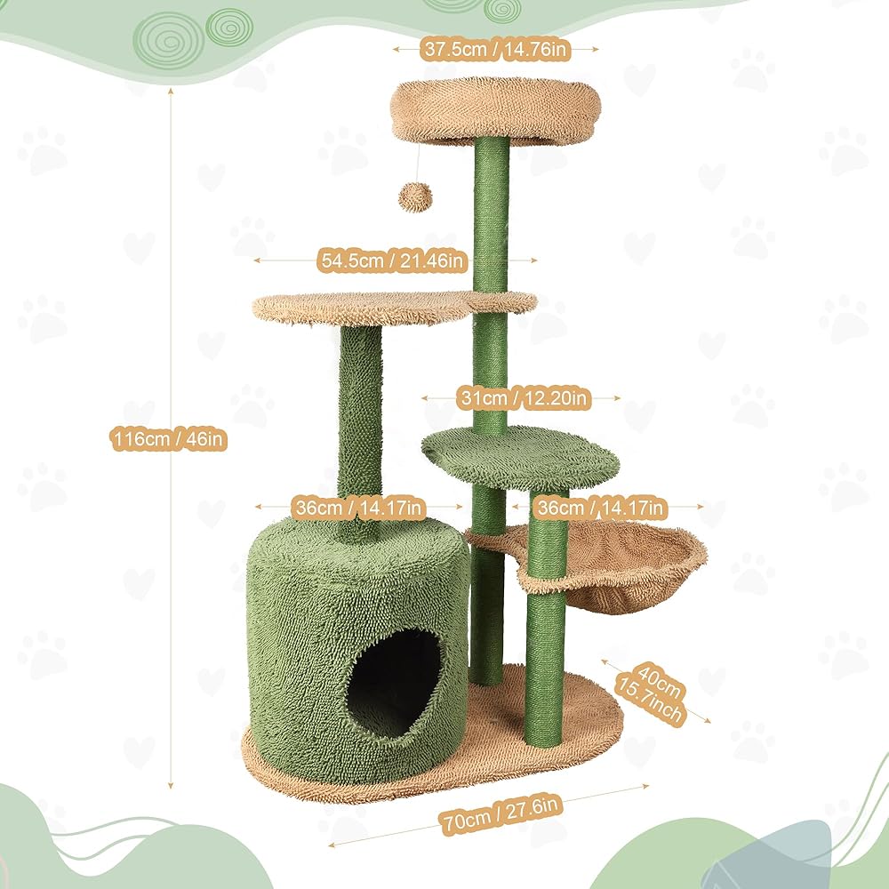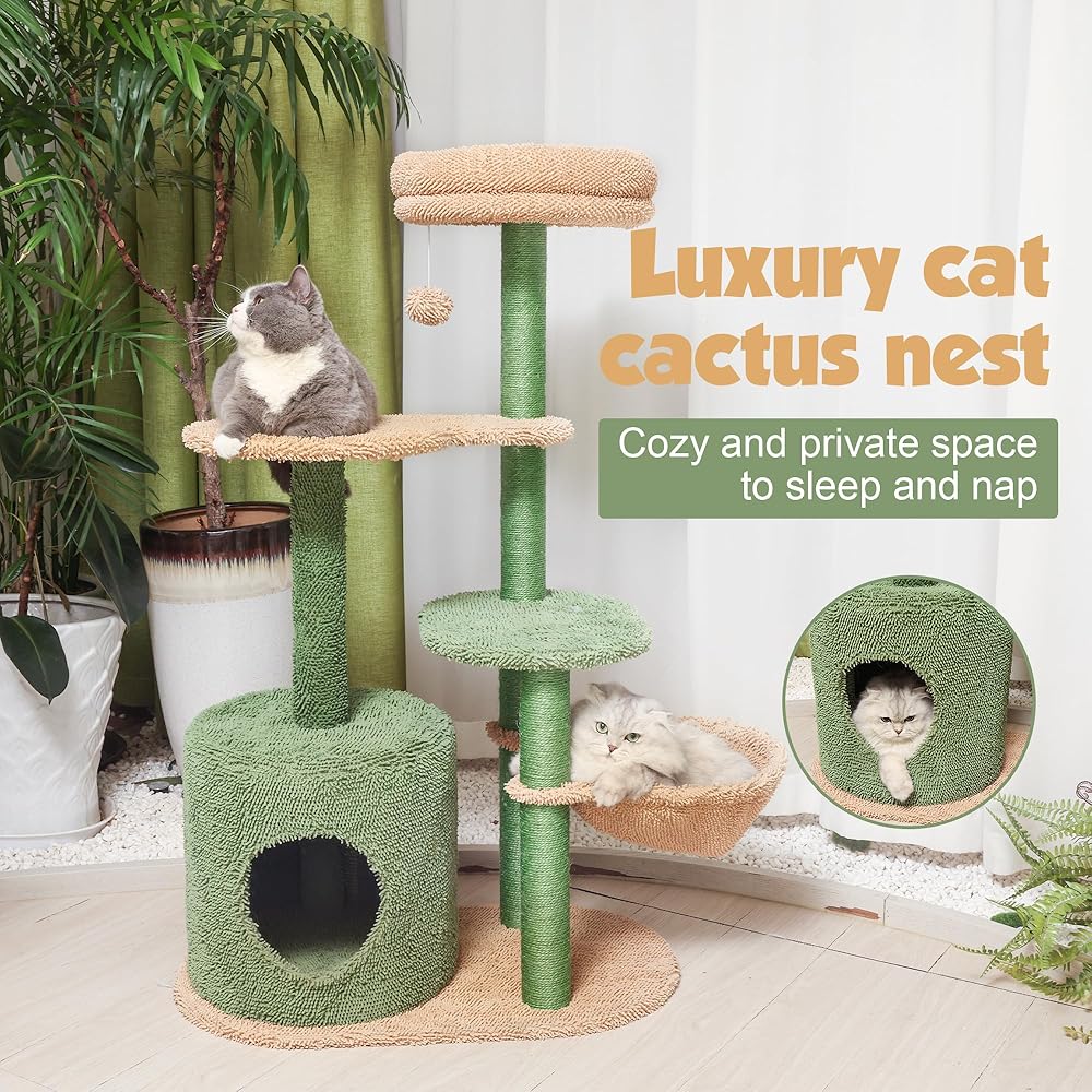 Endless Fun for Your Cats: Featuring a large top perch, a private cat condo, and a cozy hammock, this cat tree offers various spots for your furry friend to relax, play, and observe their surroundings. Cactus cat towers for a Stylish and Contented Kitty - Scratching, Napping, and Playtime Paradise.
