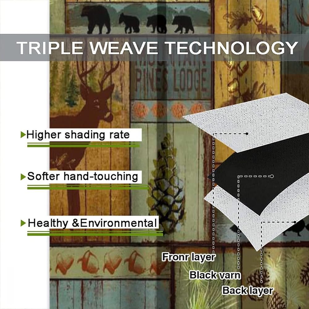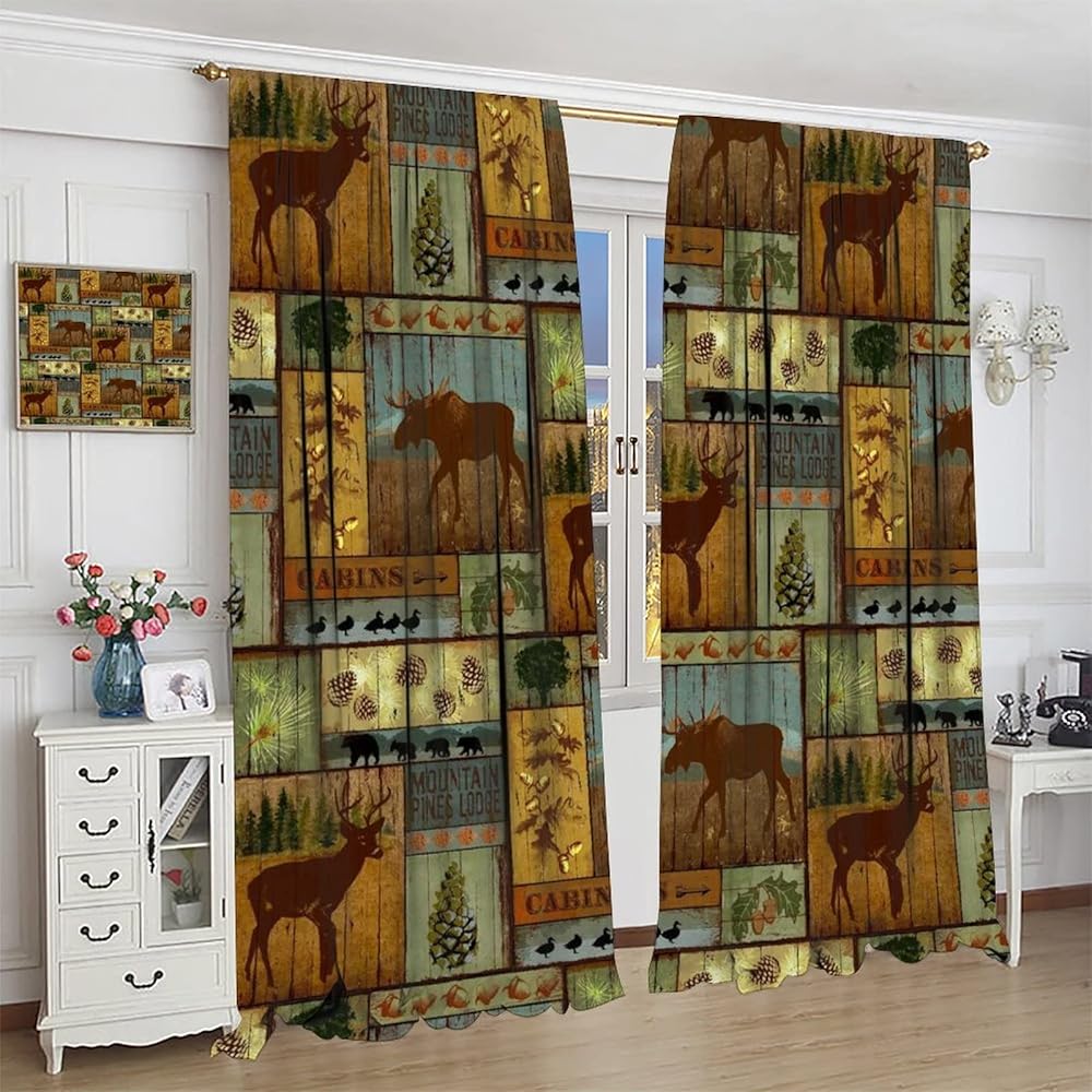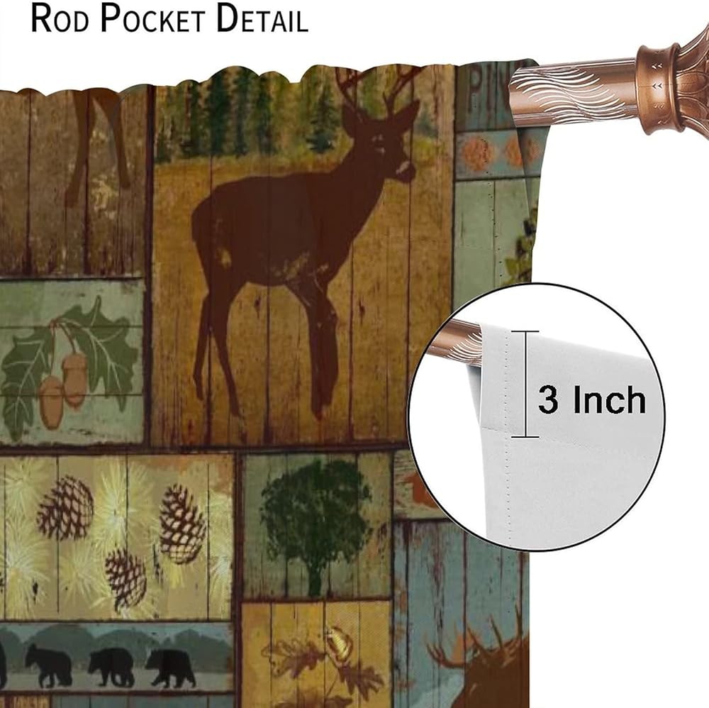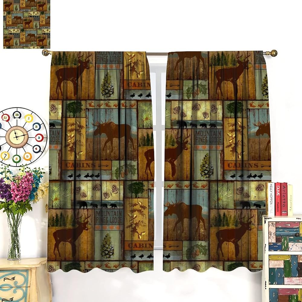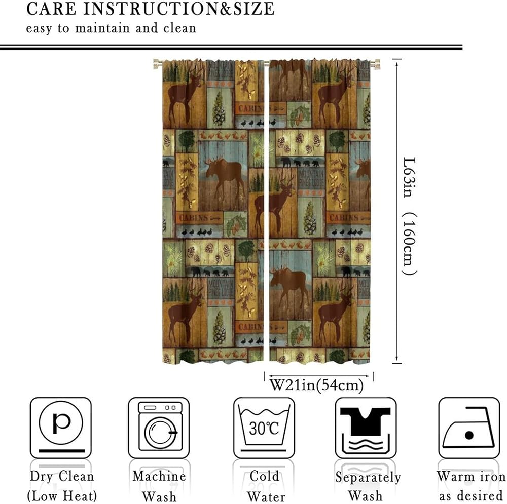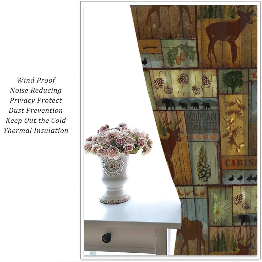 Rustic Moose Deer Curtain, Retro Rustic Vintage Bear Cottage Country Style Rustic Cabin Mountain Farmhouse Windows Curtain for Study Bedroom Living Room 42x63in