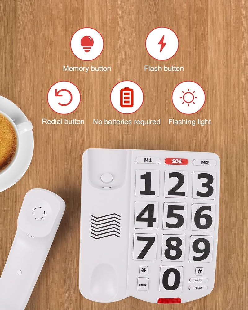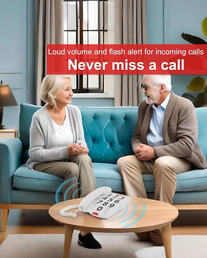 【Never miss a call】Make sure you don't miss a call with our big button phone for seniors. With a built-in light for incoming calls, each call has a visual signal. Together with this house phone for elderly people loud volume, it ensures you see and hear every ring.