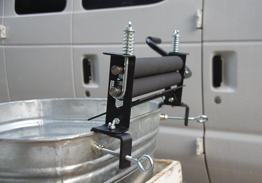 The hand wringer, is a great tool that allows you to get excess water out of cloth items. It greatly shortens drying times of cloths, towels, and swimwear. It also saves effort and time when used to wring water out of towels and chamois while wiping down cars or other washed items. The wringer comes in two models: durable black coated steel and solid stainless steel where further corrosion resistance is needed. Both models feature Nitrel rollers.