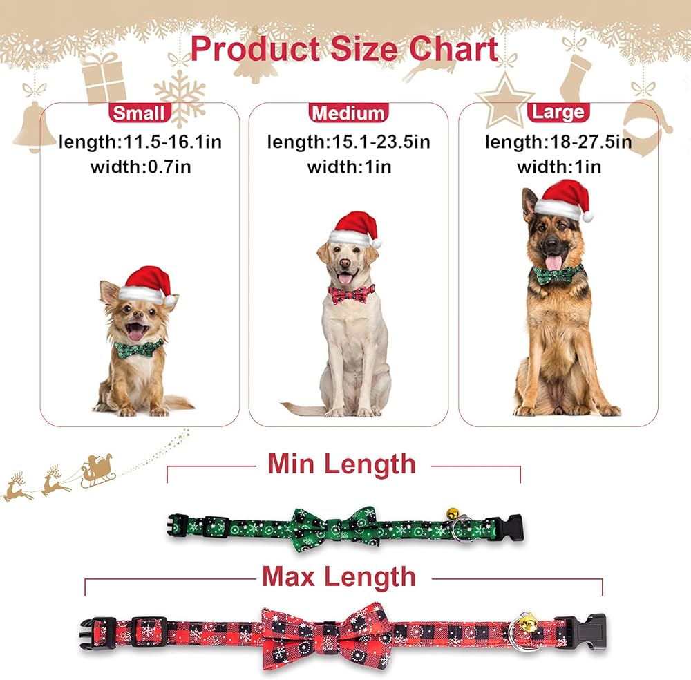 Buckles Adjustable Chirtmas Dog Collars: The buffalo plaid dog collar size is comes in 3 sizesοΌSmall: Length: 11.4"-16.1", Width: 0.8". Medium: Length: 16.1"-23.2",Width: 0.9". Large: Length: 17.7"-28", Width: 1"οΌsize can be adjusted freely, the measurement has an error of 0.5-1 inch. Please carefully measure the neck girth of the pet to ensure it can be worn.