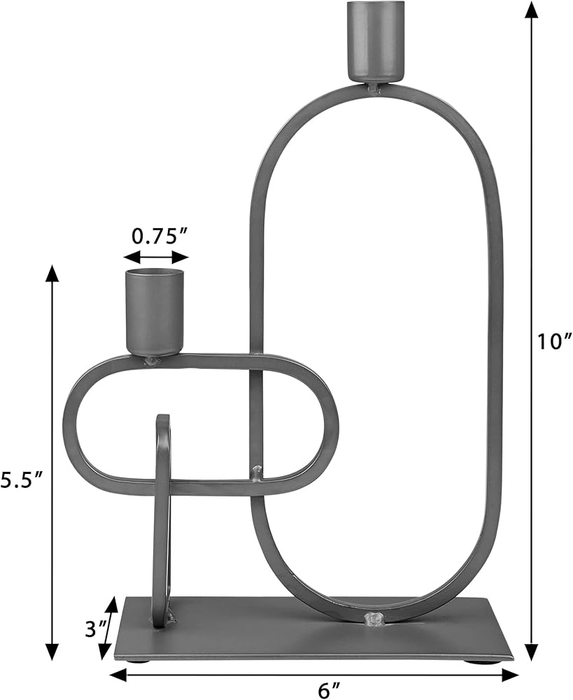 GoCraft Decorative Metal Candle Holder Set | Matte Grey Iron Candlestick Holder Set of 2 Candelabra | Metal Candle Stands for Home Decor, Wedding, Dinning, Party, Anniversary