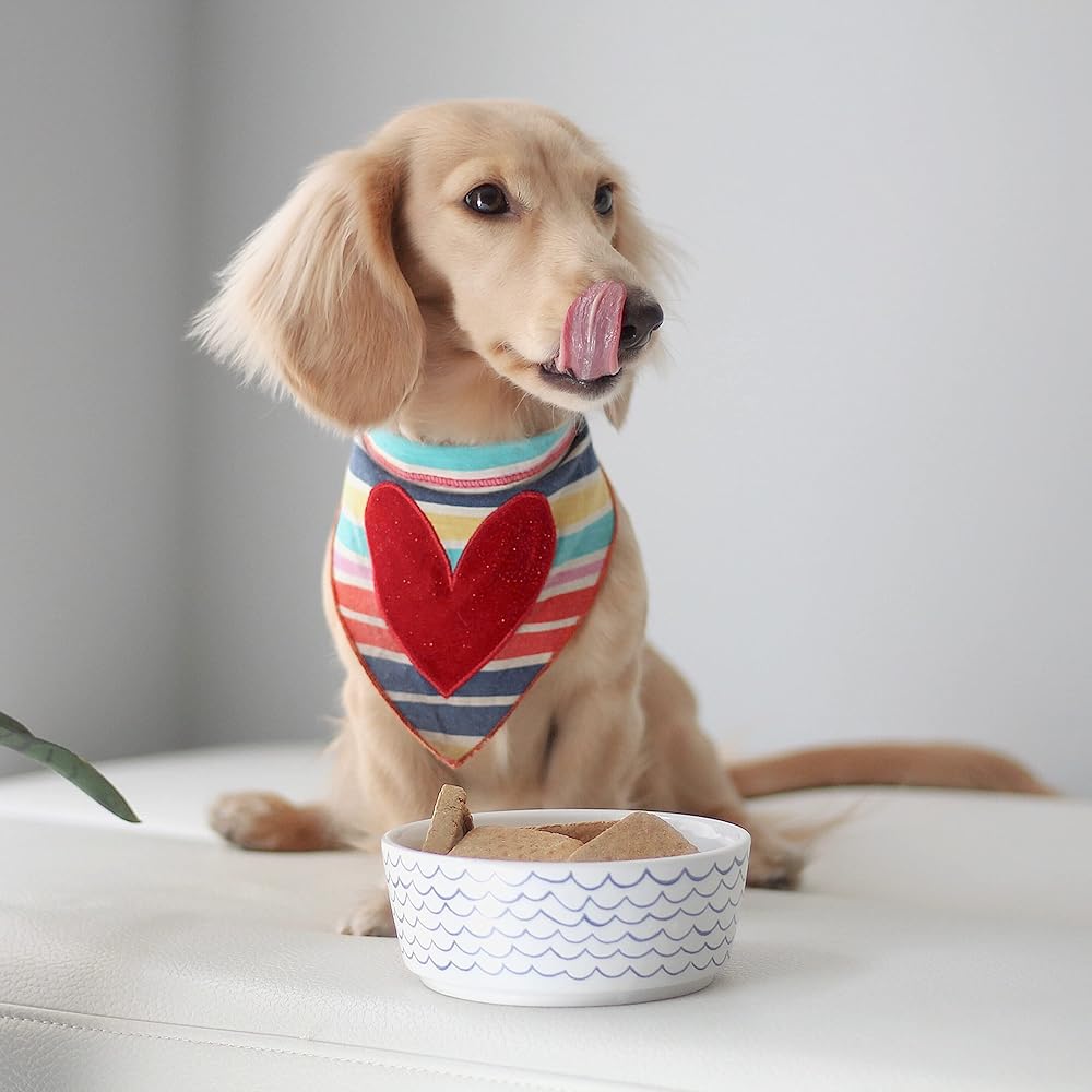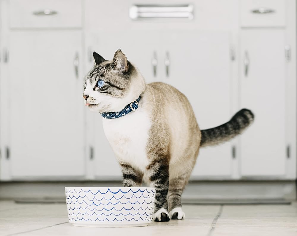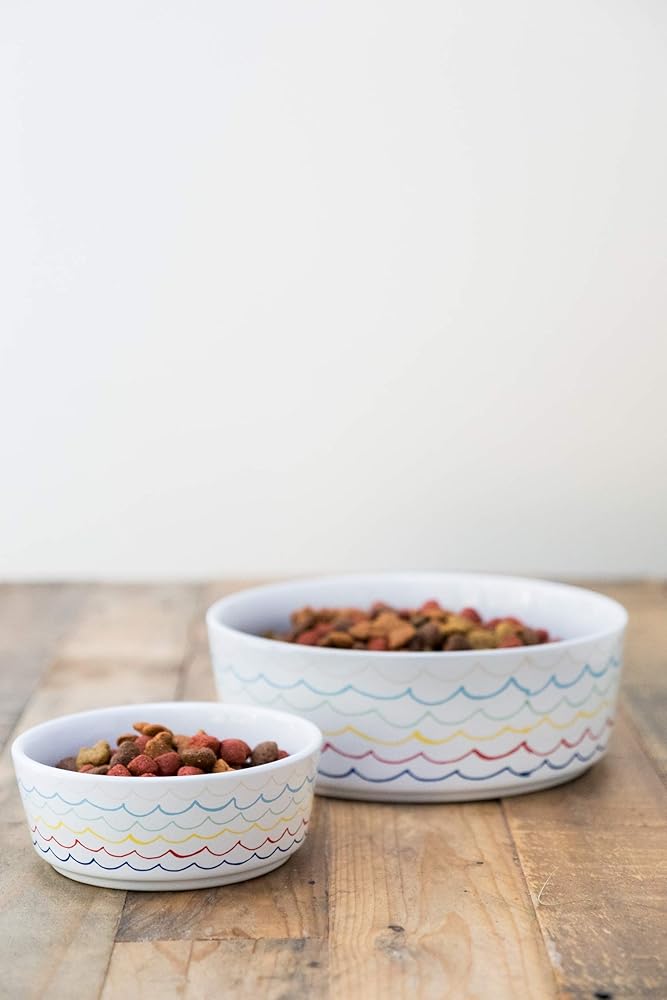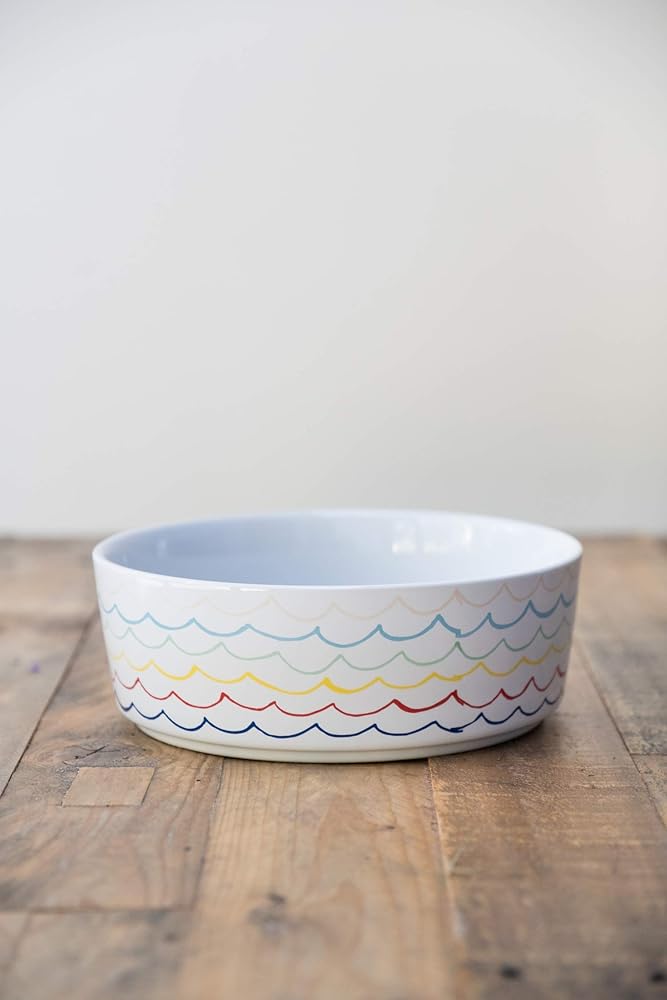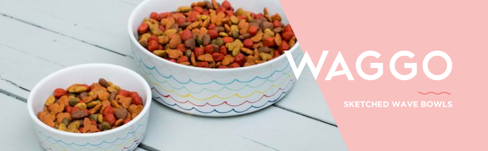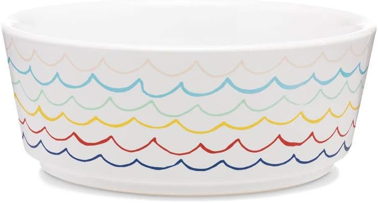 Waggo Ceramic Sketched Wave Dog Food and Water Bowl (Large, Multi)