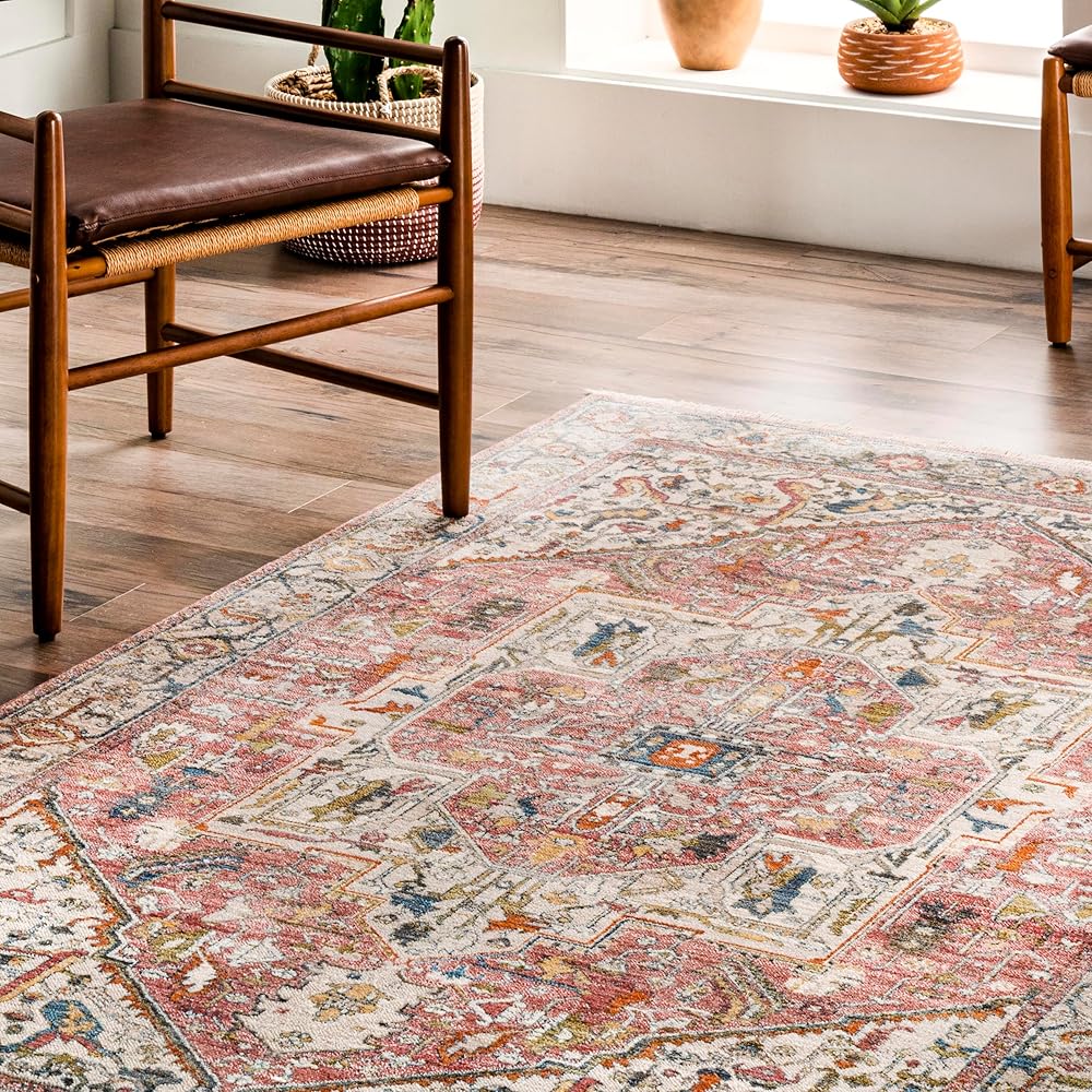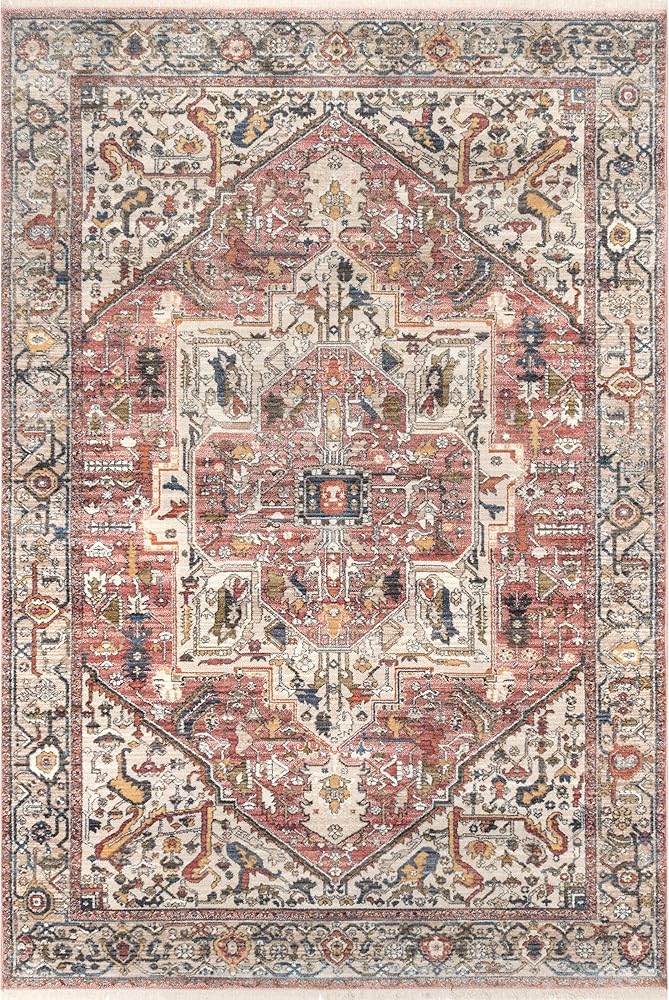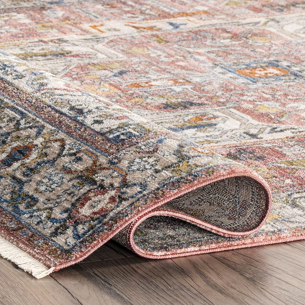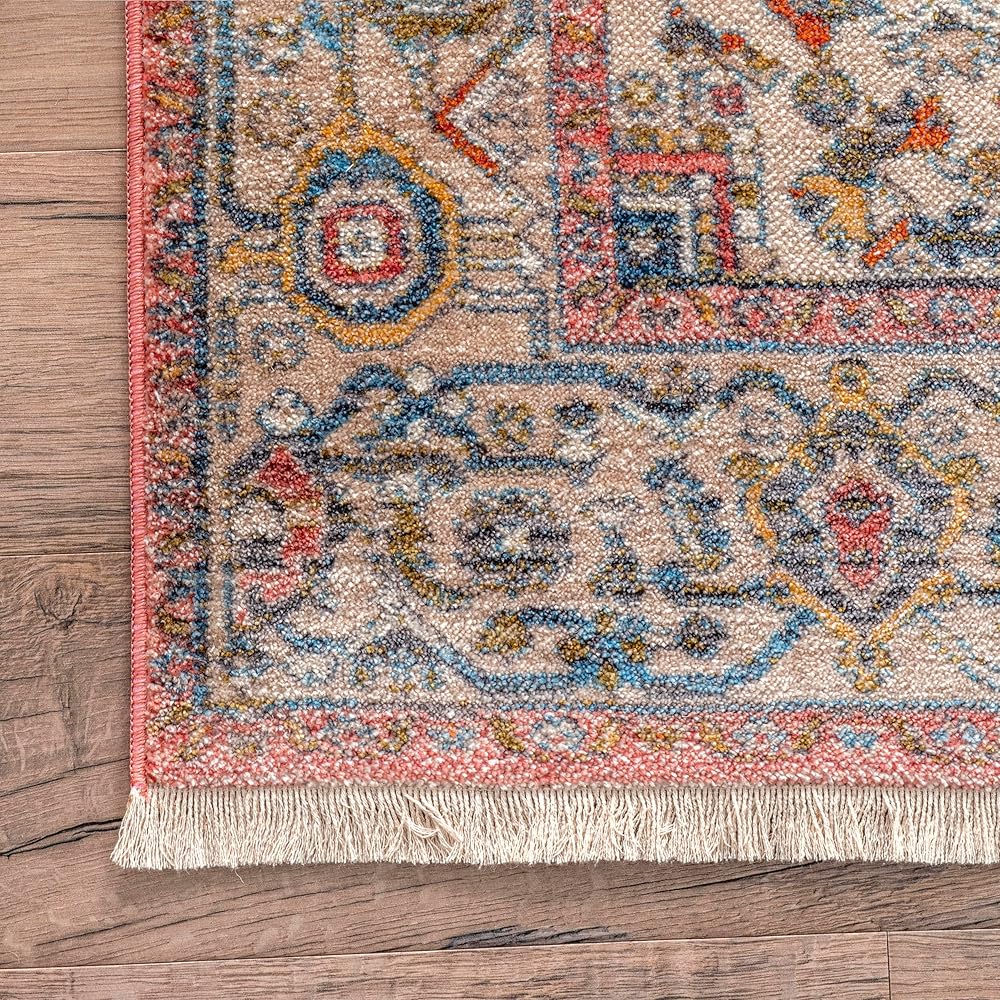 Elevate your space with this gorgeous vintage medallion area rug. This floor covering has a traditional look, but with a modern twist with a bold color scheme and fringe lined ends.This rug is made from soft durable fibers that relfect a different sheen from each and every angle and will be a trusted decor piece in any room it is placed in. Enjoy every space in your home with our pet-friendly and easy to care for area rugs.