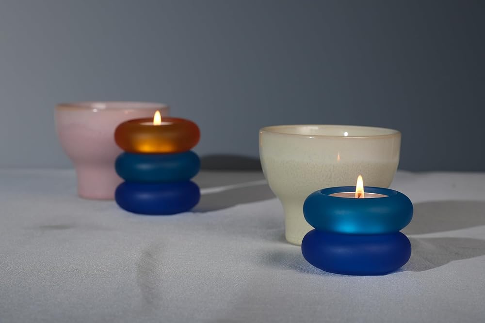 5 COLOR OPTIONS: Our pebble-like tealight holders are made out of resin. We carry the candle holders in 5 assorted color options. Choose from Orange, peacock blue, red, purple or gray blue.