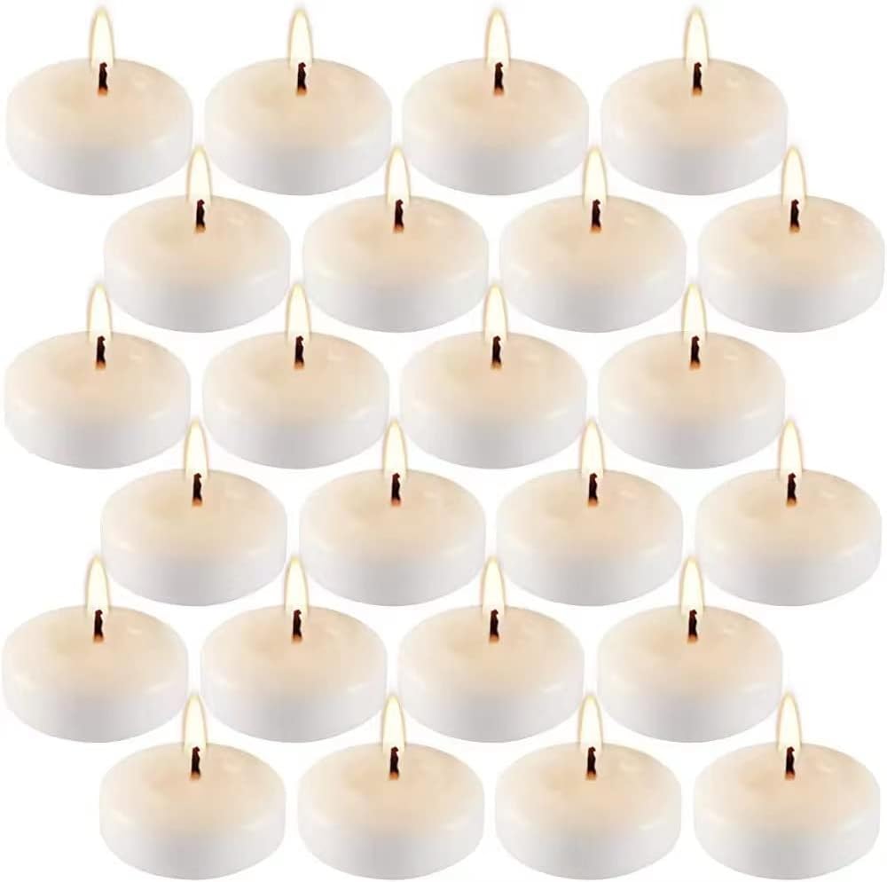 RYGufamizi 3 inches Floating Candles, White odorless Floating Wax, Used for Cylindrical vases, centerpieces for Candlelight Weddings, Parties, Swimming Pools, and Vacations (24 pcs)