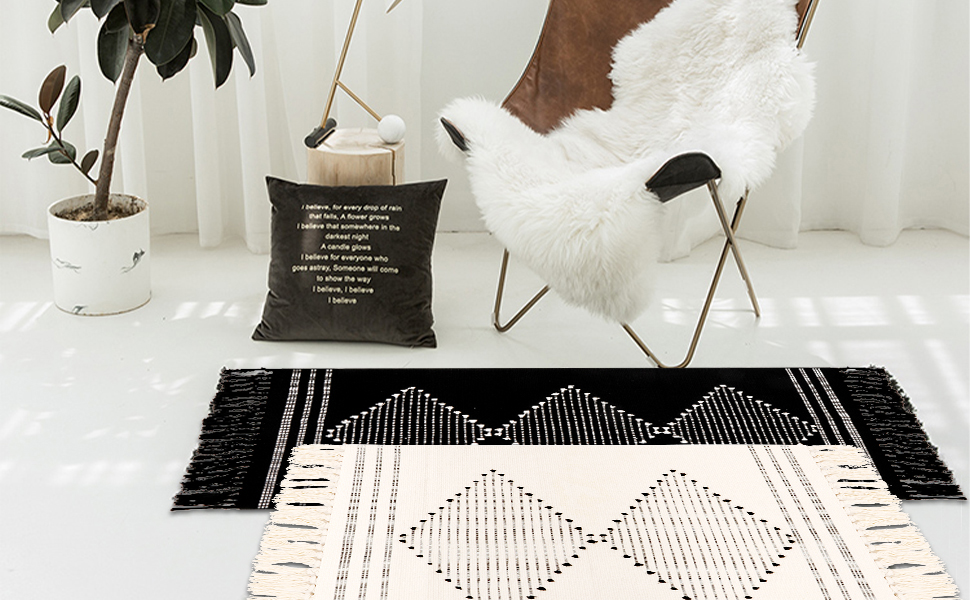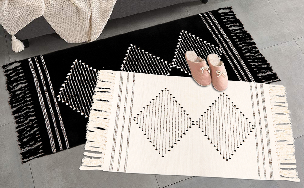 MULTIFUNCTIONAL APPLICATION SCENARIOS: Adopt the unique boho Moroccan style,Liven up or complement your decor and fine floors in the Vanity Room,and used for hallways,boho rug,laundry room rug,bathroom rug,black rug,living room rug, dining room, kitchen rug, in front of the fireplace and bedrooms