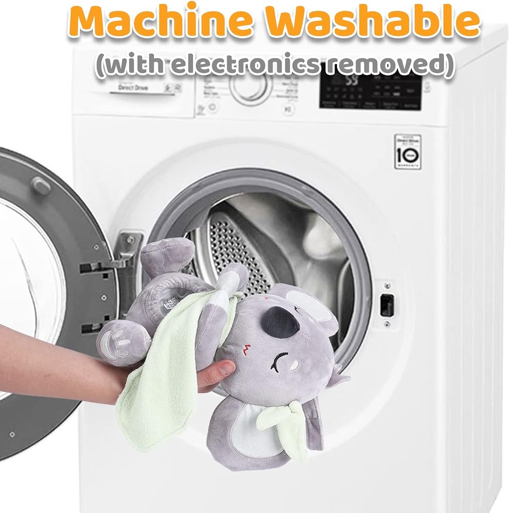 PORTABLE & MACHINE WASHABLE: Portable strap on the top of the koala allows you hook it on cribs, beds, strollers, car seat and more. Machine washable with electronic sound machine removed. Perfect baby show gifts, birthday gifts, baby soothing toys, and baby crib toys for newborns infants girls boys toddlers unisex from 0 month and up.