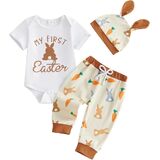 【Package Include】 : 1 x My first easter baby boy outfit newborn infant snuggle bunny short sleeve romper top pompom tail long pants with hat 3pcs set.