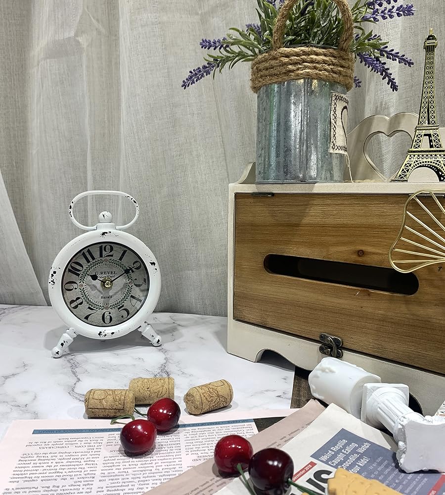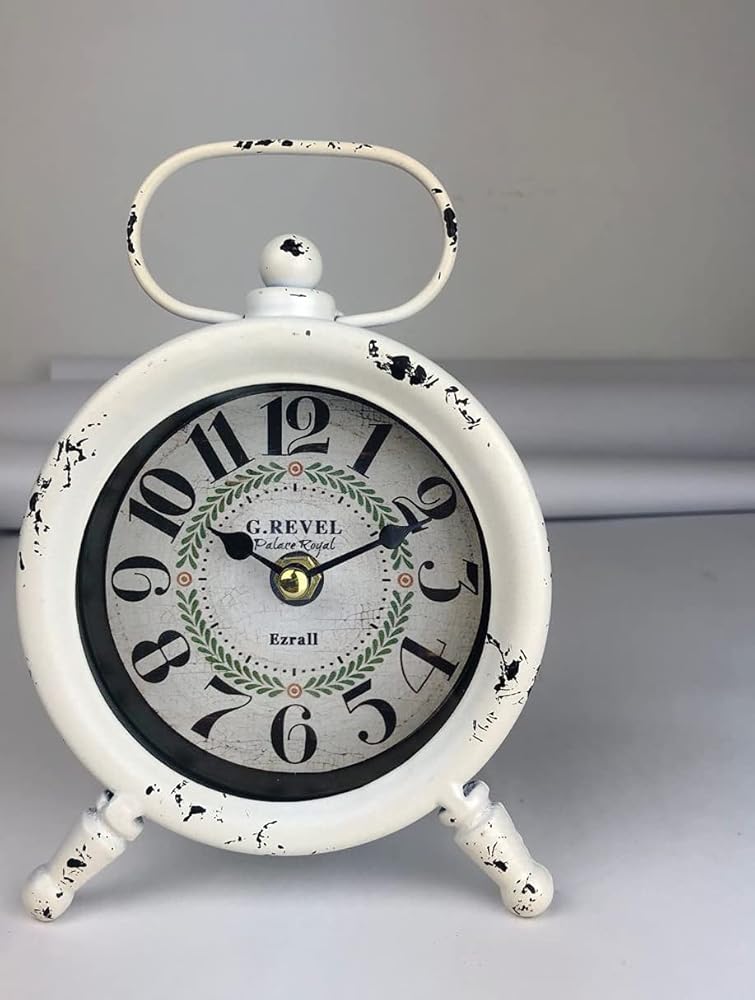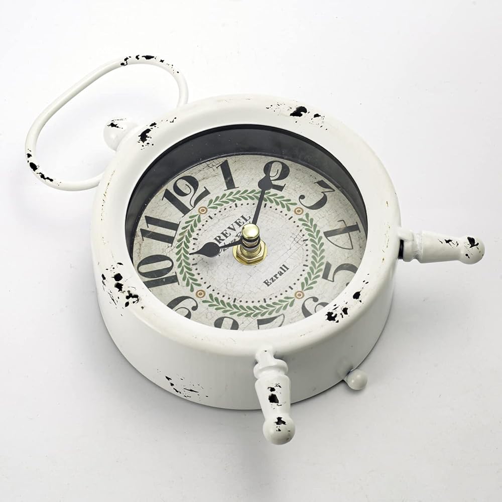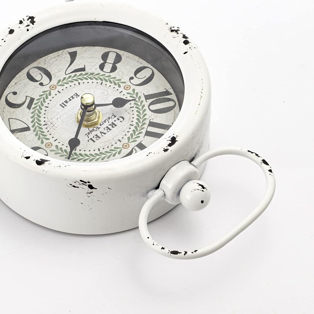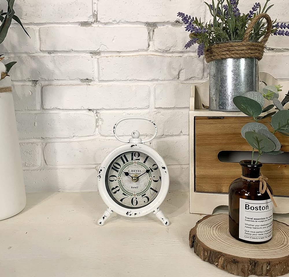 Small Retro Desk Clock.Vintage Wall Clock, Shabby Chic Metal Round Quartz Shelf Table Clock for Shelf Decor Desk Decor Wall Decor Table Decor