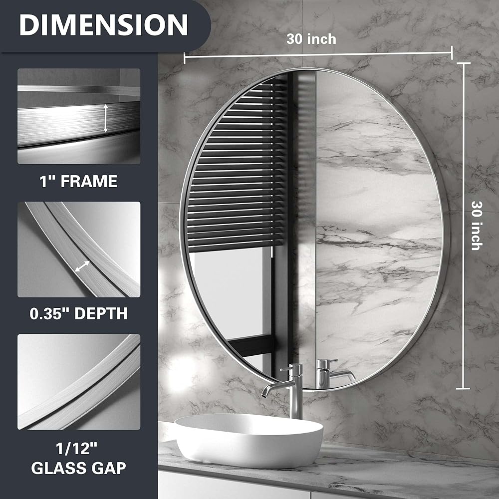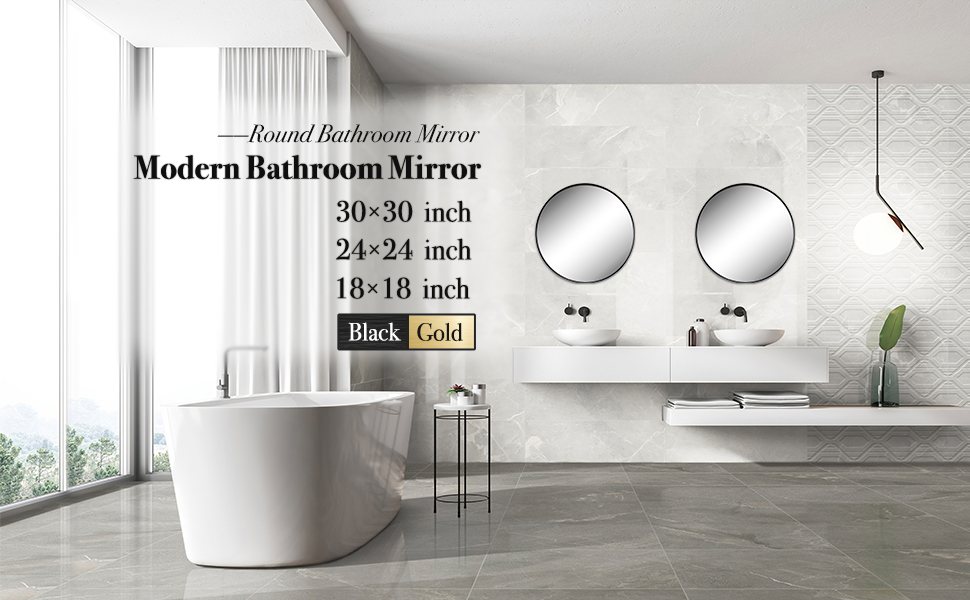 Clavie Round Bathroom Mirror (30" x 30"),Black