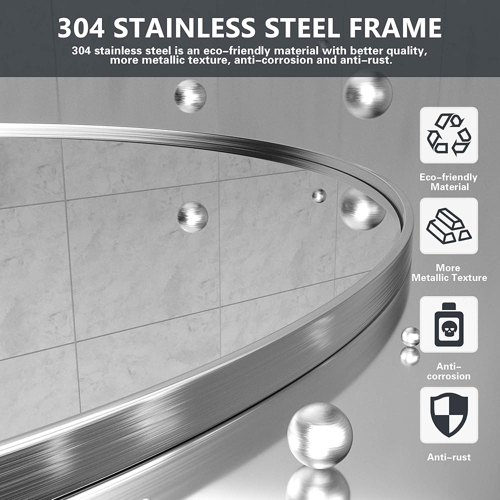 آمنة ومتينة: تحتوي هذه المرآة المعدنية على 3 طبقات من الطلاء المقاوم للماء على سطح إطار الفولاذ المقاوم للصدأ، 3 مرات من التلميع اليدوي، واللوحة الخلفية مصنوعة من مادة MDF المقاومة للرطوبة، والتي تُعد آمنة ومتينة.