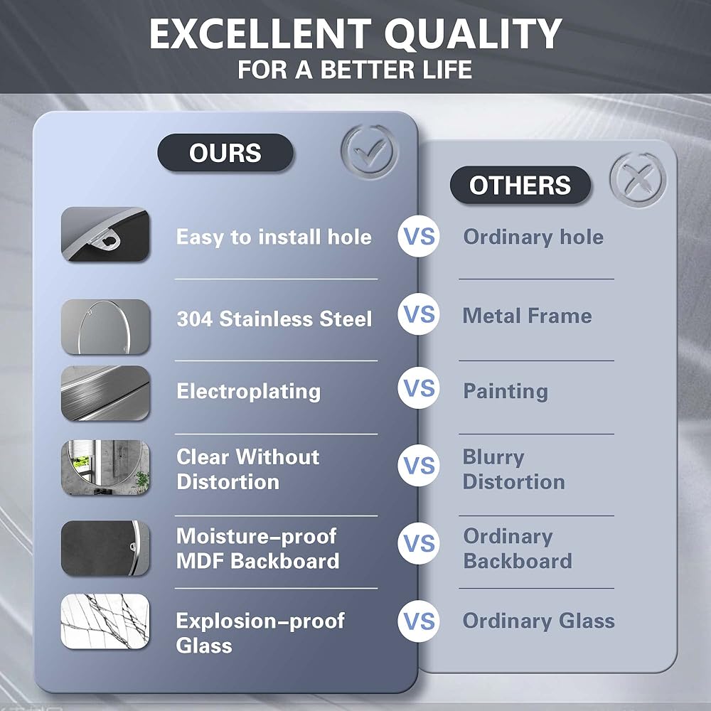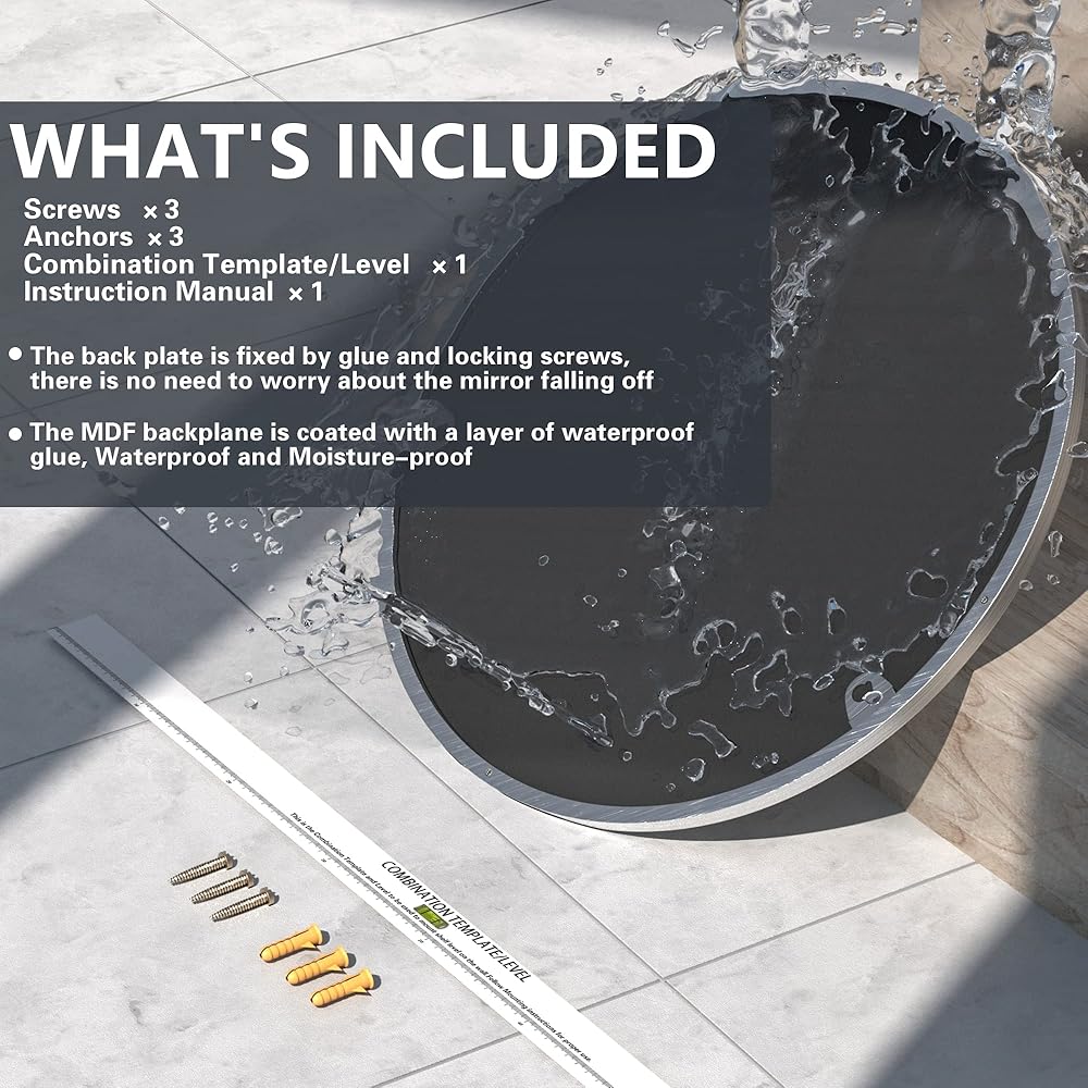 سهل التركيب: يشتمل الجزء الخلفي على حلقة D مثبتة مسبقًا لتعليقها. مرآة الحمام مجهزة بأجزاء صلبة جدارية معززة ومسامير لمساعدتك على تثبيتها بسهولة. إلى جانب ذلك، قمنا بإرفاق دليل لك.
