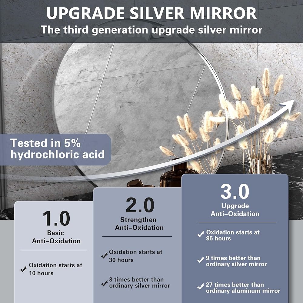 EASY TO INSTALL: The backing includes our pre-installed D-rings to hang it either horizontally or vertically (landscape or portrait). The bathroom mirror comes with the reinforced wall hardware and screws are included to help you easy to install. Besides, we have attached use manual for you