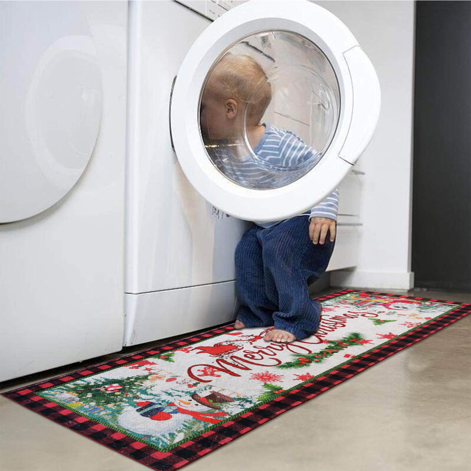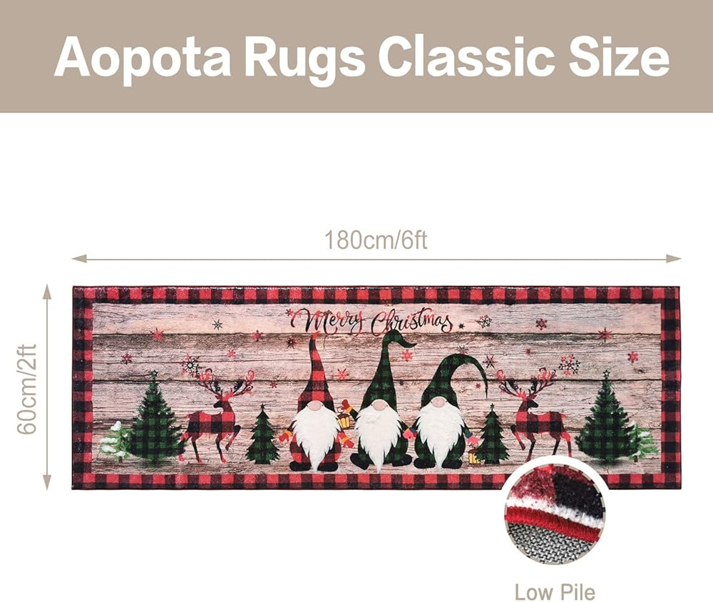 New Generation of Anti-slip Technology Area Rug:Aopota christmas kitchen runner rug are equipped with a super anti-slip system that improves the bottom anti-slip performance by 20% while increasing the softness by 100% while improving safety and comfort, so you no longer need to buy a separate carpet anti-slip mat!