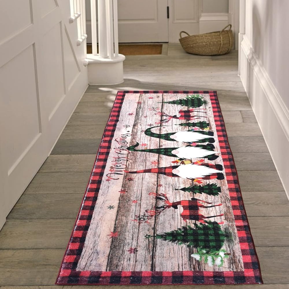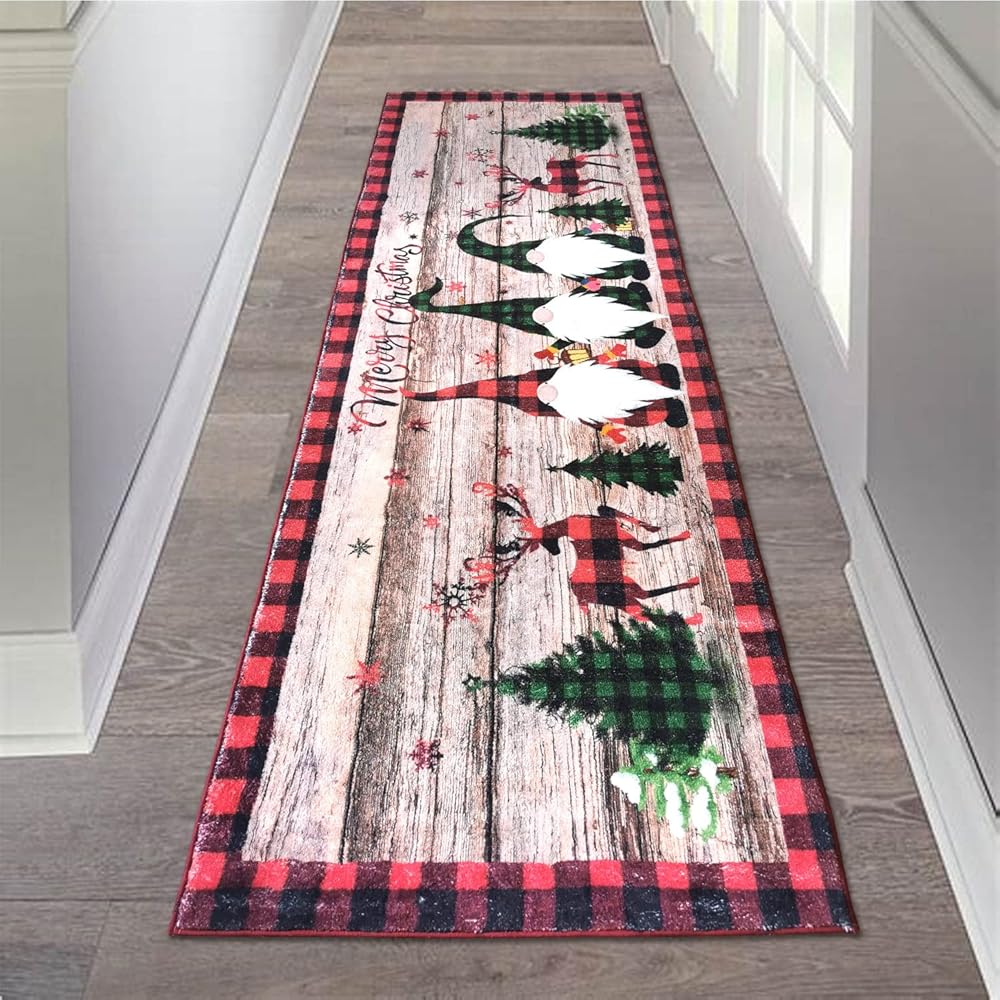 Christmas Hallway Rug Perfect for Home Office:This area rug is PERFECT for your home office! you may need a rug that has enjoyable pile so your office chair wouldn't get caught and also small enough to not have to lift furniture to lay it down. This hallway runner rug length is the perfect solution! Plush enough to feel great on your feet, but thin enough to easily roll over it with your office chair. It brings the perfect amount of comfort to your home office.