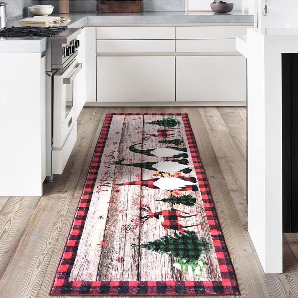 Christmas Rug runners 2x6ft Thicker Than Your Average:I believe that you have the same feeling that getting tired of feeling the cold floor first thing in the morning when you make coffee. The pile is thick enough and comfortable under foot. It is trendy and thick, looks,and feels much more plush than you would expect . Plus the pattern adds a nice more refreshed and jazzed up look to your room.