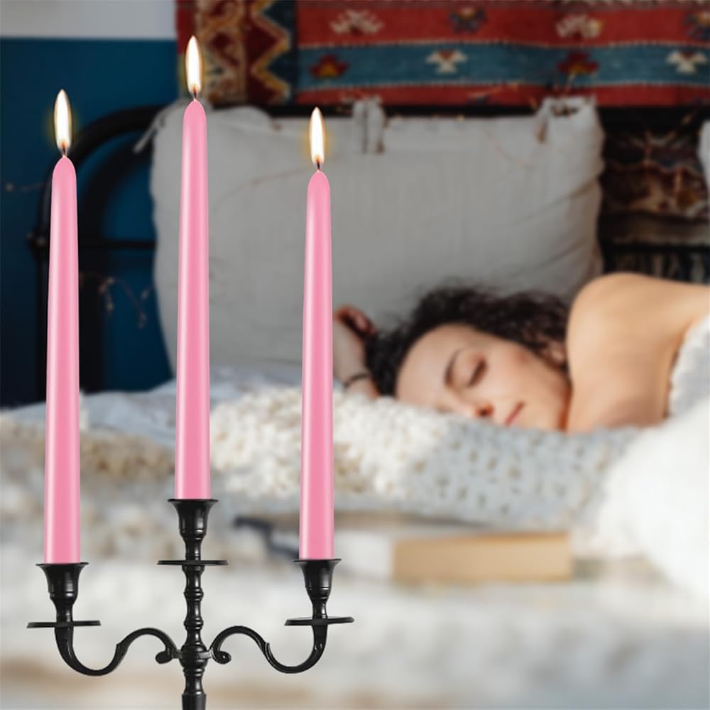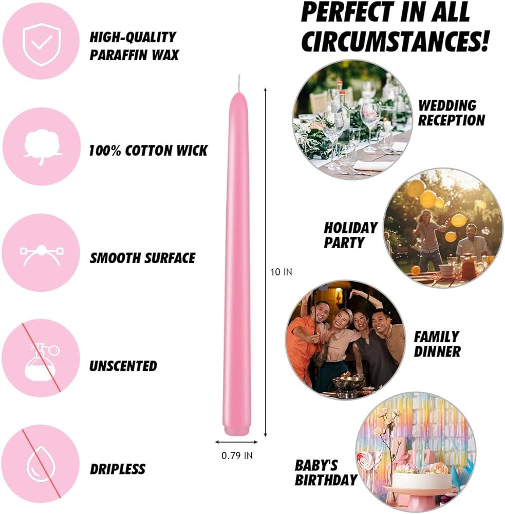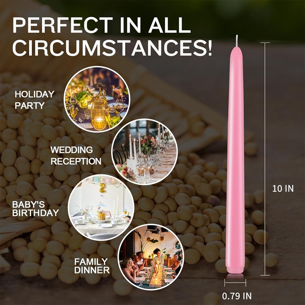 ★【LONG BURNING TIME】The set includes 10 simple tall tapered dripless candles. One candle can burn for about 8 hours, 12 candles can burn for 96 hours, and a box of 12 candles can burn for about 96 hours. Based on 2-3 hours of use per day, it can be used for up to 4-5 weeks.