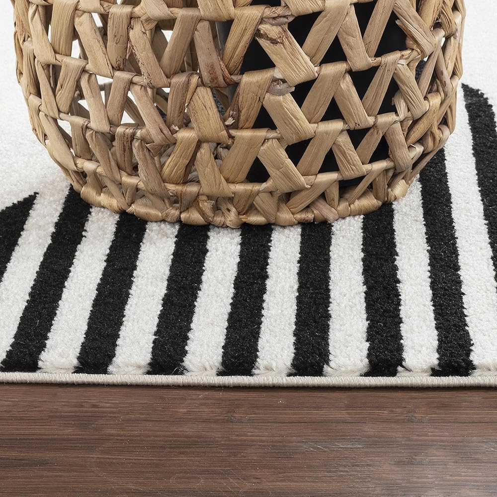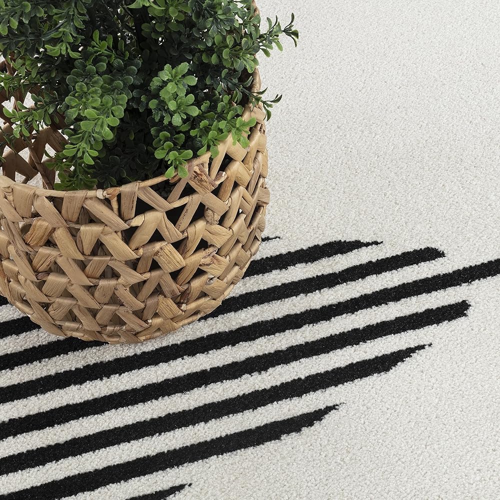 Our Berat Rug is simply linear perfection, boasting perfectly positioned black stripes atop a cream backdrop, this pattern creates a play on tones and shapes you'll surely swoon over. This low-pile rug is ideal for high-traffic areas in your home like your foyer, mudroom, or living room. With its durable, power-loomed construction, this rug is practically shed-resistant— leaving you with less vacuuming and more Zen.