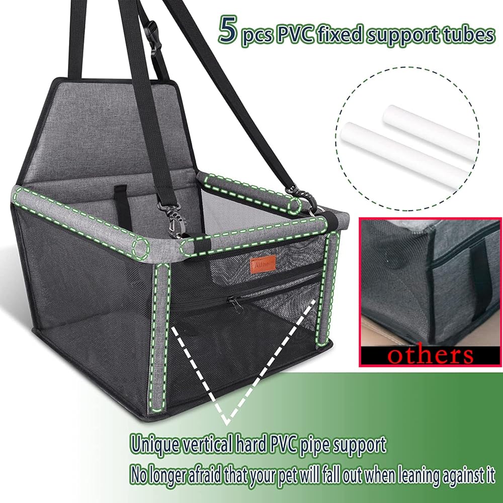 【Foldable and Portable】When you don't need to use it, you can fold it. When you go out with your pet, you can take the seat anywhere.And the PVC fixed support tubes around the seat provide strong support.No matter how your pet move,it will not fall out.
