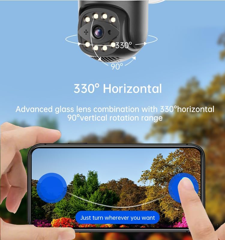 Pan/Tilt/Zoom - Horizontal 335 degree and vertical 90 degree, 10x digital zoom, more wide viewing angle. Easily controlled by the mobile app, enables you to zoom in to see more details or zoom out to see a larger area.