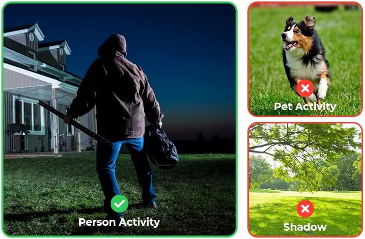 Floodlight and Sound Alarm: This security camera will be activated when the moment motion is detected. It then automatically turns on the mini flood light, alarms the security siren, records the scene and sends alerts to your smartphone.