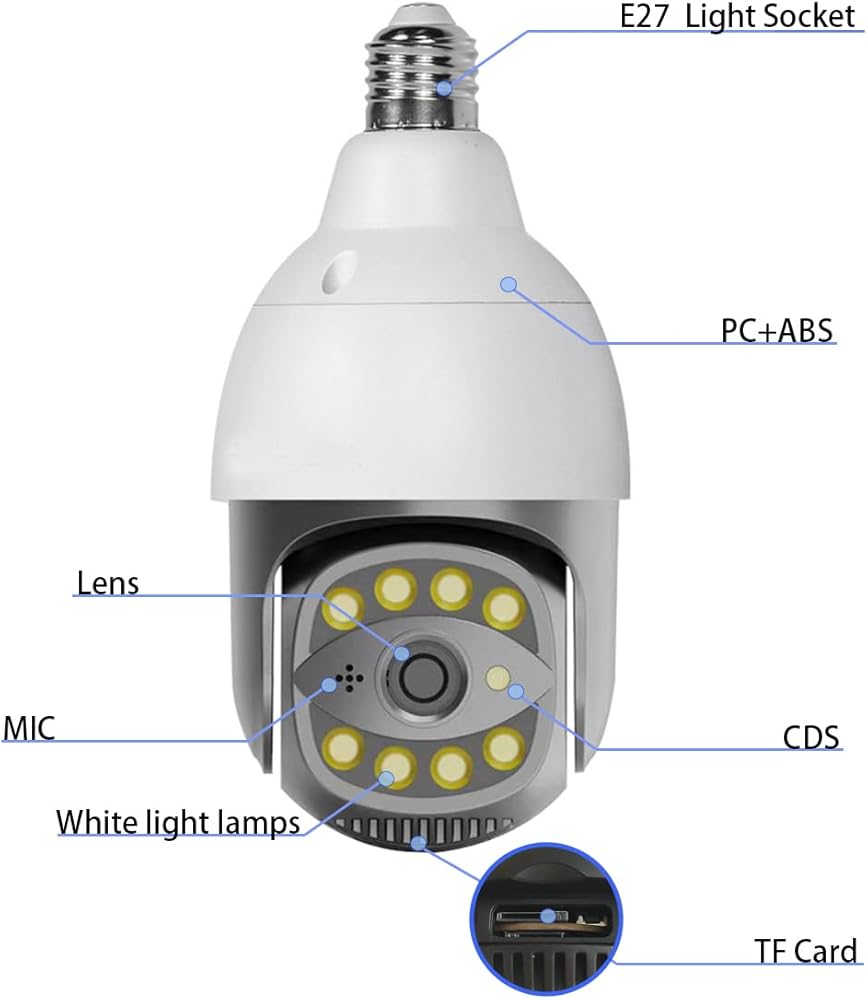Easy To Install - Bulit-in power adapter, compatible with E26/E27 light socket, just install the camera into the E26/E27 socket and turn on the power. No breaking the wall, no wiring, simple and convenient.