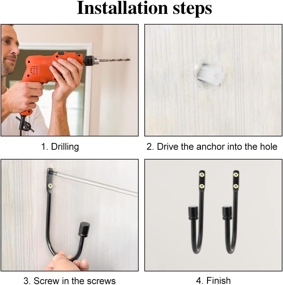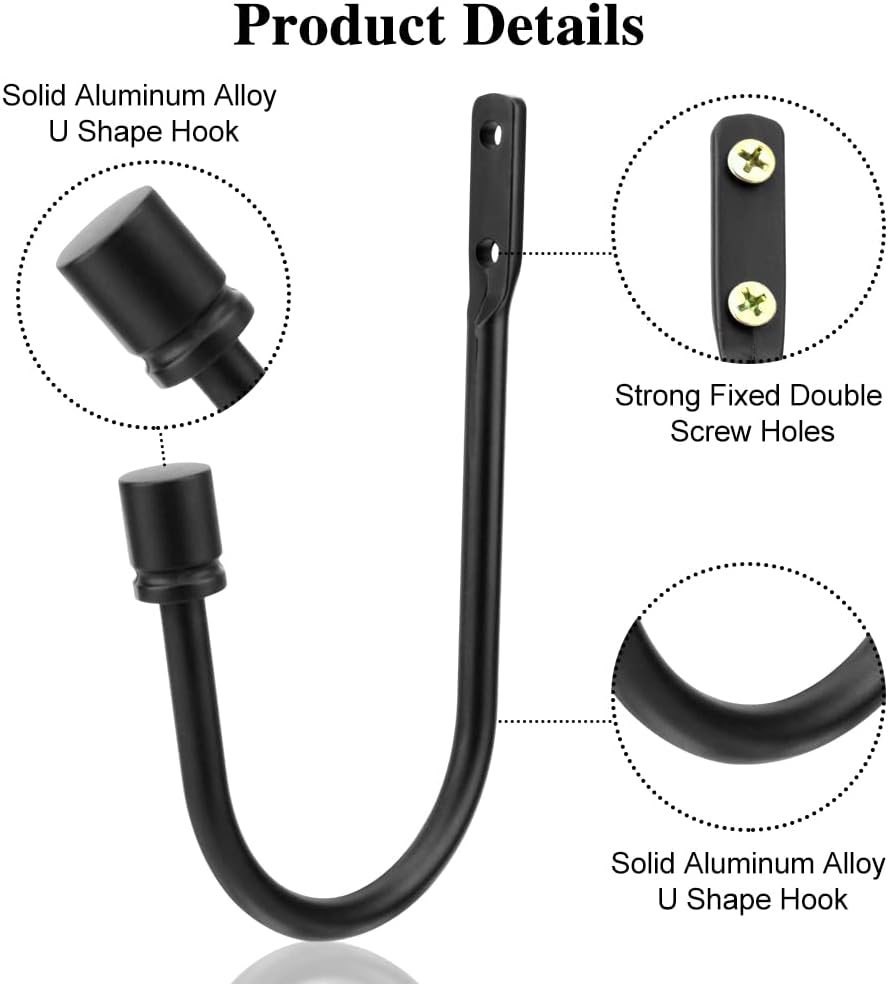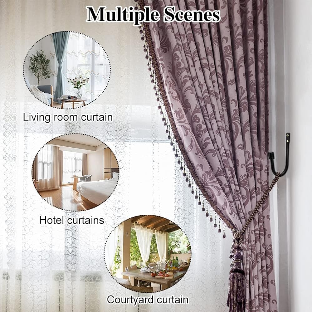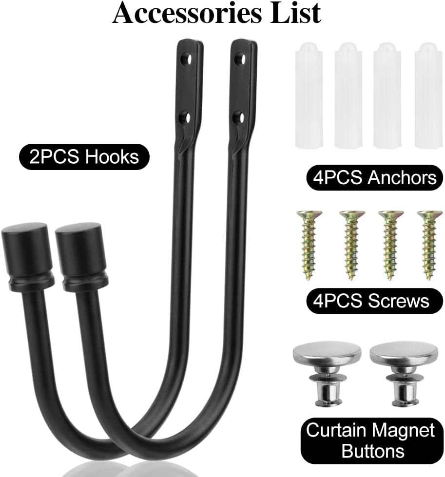 Curtain Tieback Hooks, 1 Pair Heavy-Duty Metal Drapery Tieback Hooks Wall Mounted Drape Holder for Voiles Curtain Holdback (Black)