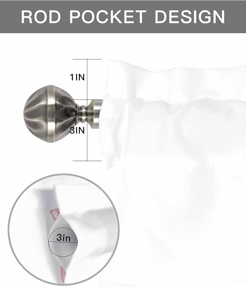 Rod pocket measures 3inch with 1inch header for easy hanging, fits most standard rods. It's easy to move the valances along the rods.