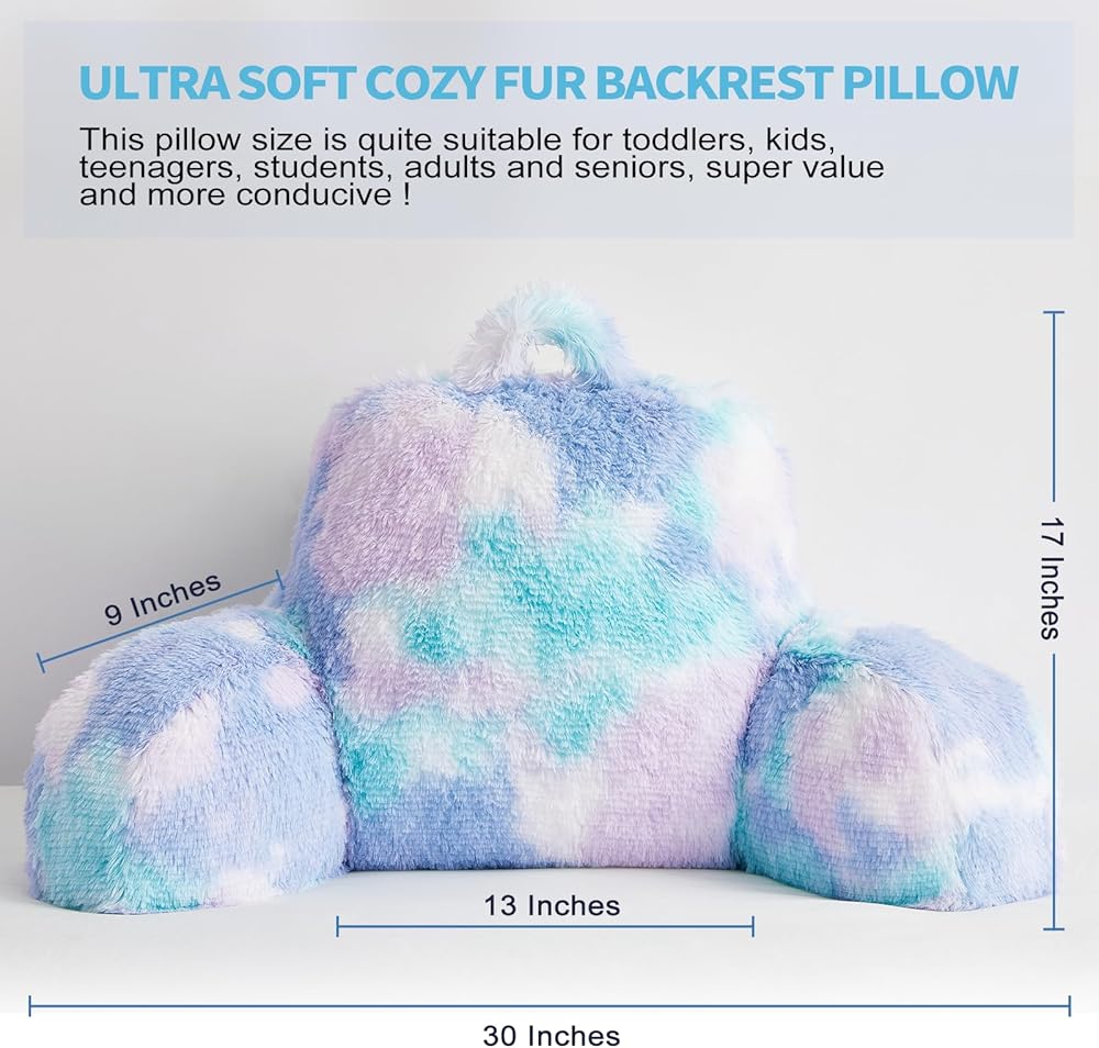 PERFET BACK & ARM SUPPORT - This bed rest pillow with arms measures 30x17x17 inches. Experience the ultimate comfort and relaxation with this back support pillow. Crafted with extra fluffy fur surface, our bed reading pillow offers a luxurious and soft touch that will make your reading sessions even more enjoyable. Its premium filling provides exceptional support for your back, neck and arms, allowing you to sit comfortably for extended periods.