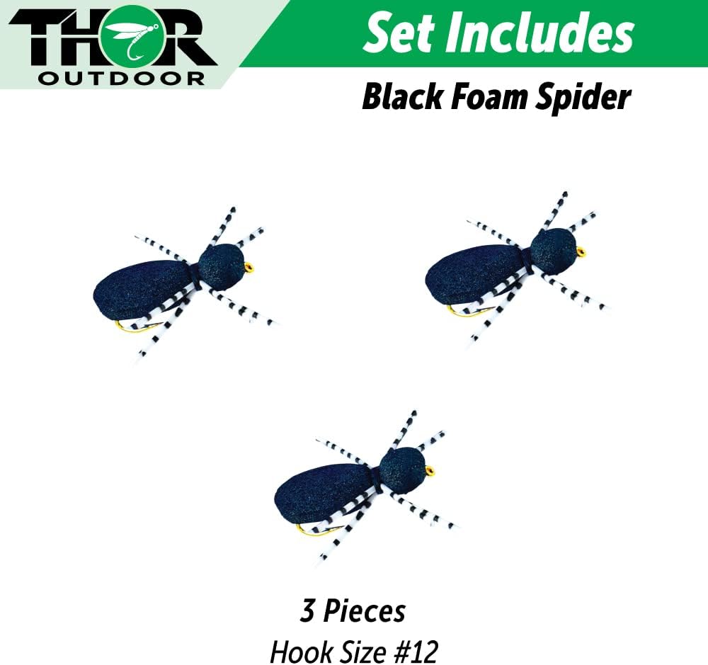 Our black foam spider is by far the most popular color choice for this fly, but the red and white patterns are also a solid choice. You really can't go wrong. It is probably best to have a variety of colors and sizes available so that you can experiment with what works best in your locations. Foam spider flies are generally tied on either a #12 or #14 size hook.